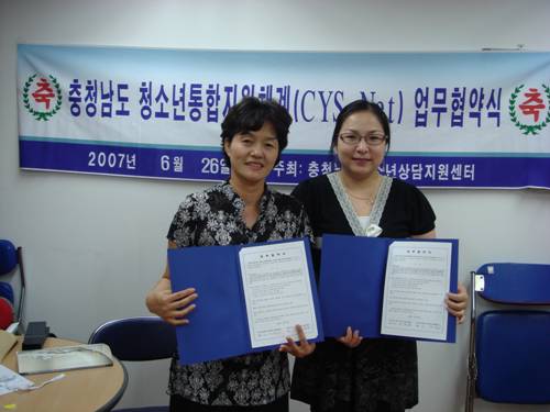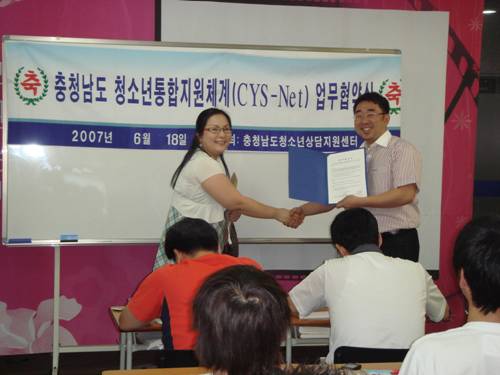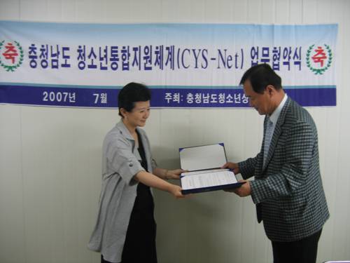 2007년 업무협약식 2950 | 최고관리자 | 2007-11-14 2007년에 진행되었던 업무협약 진행 사진 중 일부 천안종합고용지원센터, 충청남도가정위탁지원센터, 천안지역아동센터연합회, 호서직업전문학교