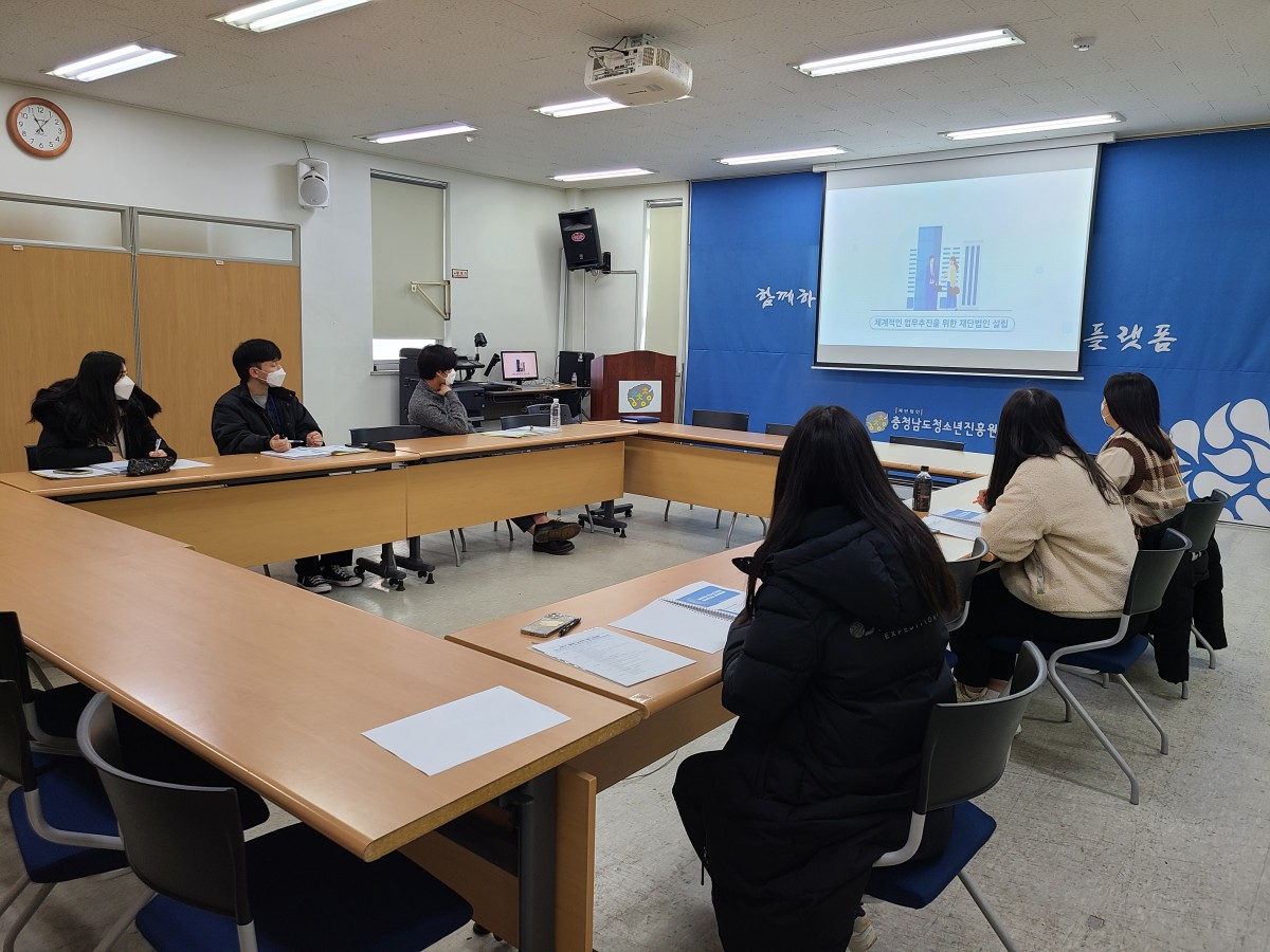 (재)충청남도청소년진흥원 기관 소개와 원장님 면담을 통해 청소년상담, 활동, 성문화센터 각 기관이 어떤 업무를 하고 있는지 알 수 있었습니다. 또 실습기간동안 상담복지센터 사업에 대한 생생한 교육과 팀별 업무지원, 과제 수행으로 청소년사업 현장에서 진행되는 업무에 대해 경험해보는 시간을 가졌습니다.