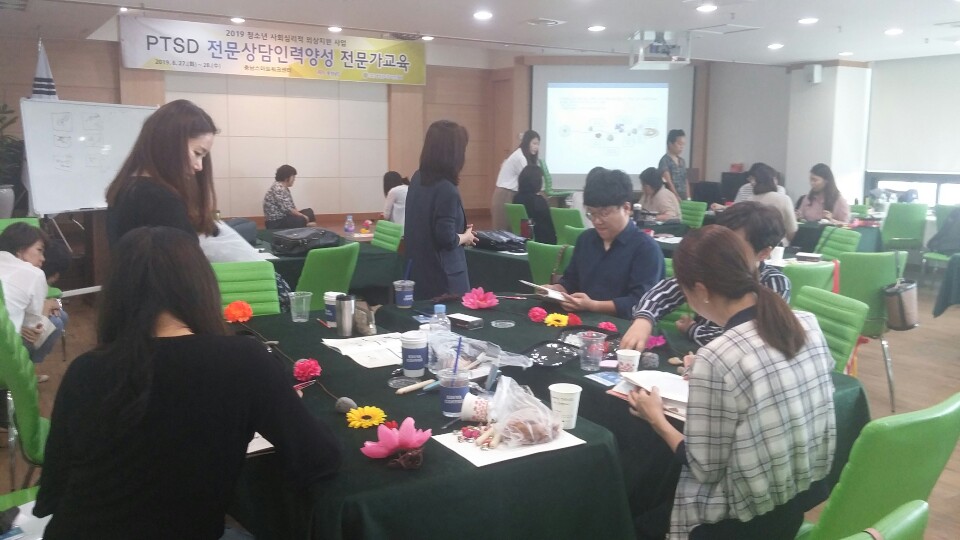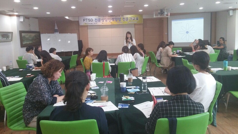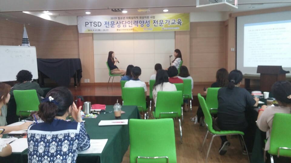 2019년 PTSD전문상담인력양성 전문가교육 1398 | 최고관리자 | 2019-11-11 - 일시 : 2019년 8월 27일(화) ~ 8월 28일(수) - 장소 : 충남스마트워크센터 - 교육내용: 근거기반 트라우마 노출 치료 * 청소년 심리적 외상에 대한 효과적 개입을 위한 PTSD전문상담인력양성 단계별 연수 중 전문가교육이 진행되었습니다. <?xml:namespace prefix = "o" ns = "urn:schemas-microsoft-com:office:office" />