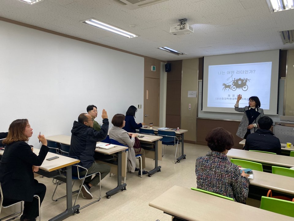 2020년 충청남도청소년상담복지센터 1차 멤버십데이 1217 | 최고관리자 | 2020-11-17 일자 : 2020.4.14.(화) 장소 : 아산시 아이누리디자인 및 인근 카페 대상 : 본원 청소년상담복지센터 센터장 및 팀장 등 내용 - 협업 시너지를 높이는 갈등 관리를 위한 리더십 점검과 교육 - 업무효율성 향상과 실전 활용 가능한 강의 수강