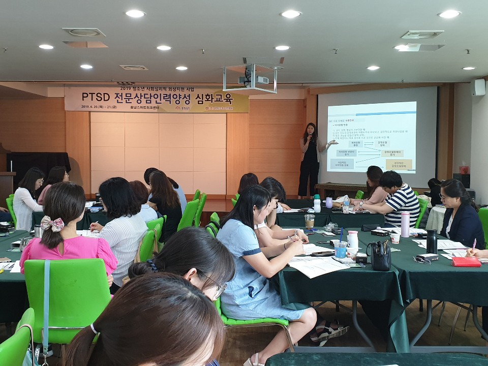 2019년 PTSD전문상담인력양성 심화교육 1522 | 최고관리자 | 2019-11-11 - 일시 : 2019년 6월 20일(목) ~ 6월 21일(금) - 장소 : 충남스마트워크센터 - 교육내용: 근거기반 트라우마 안정화 치료 * 청소년 심리적 외상에 대한 효과적 개입을 위한 PTSD전문상담인력양성 단계별 연수 중 심화교육이 진행되었습니다.