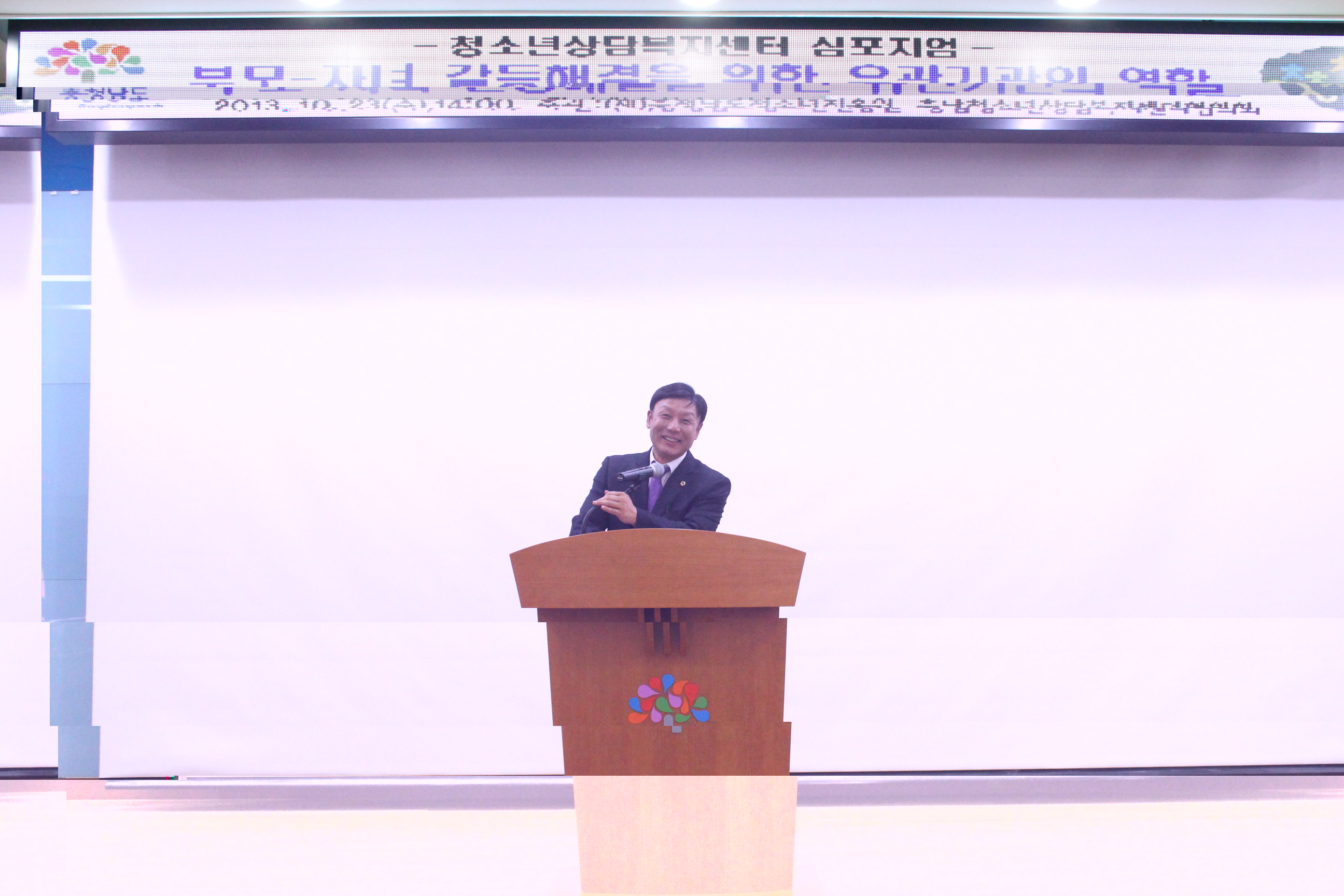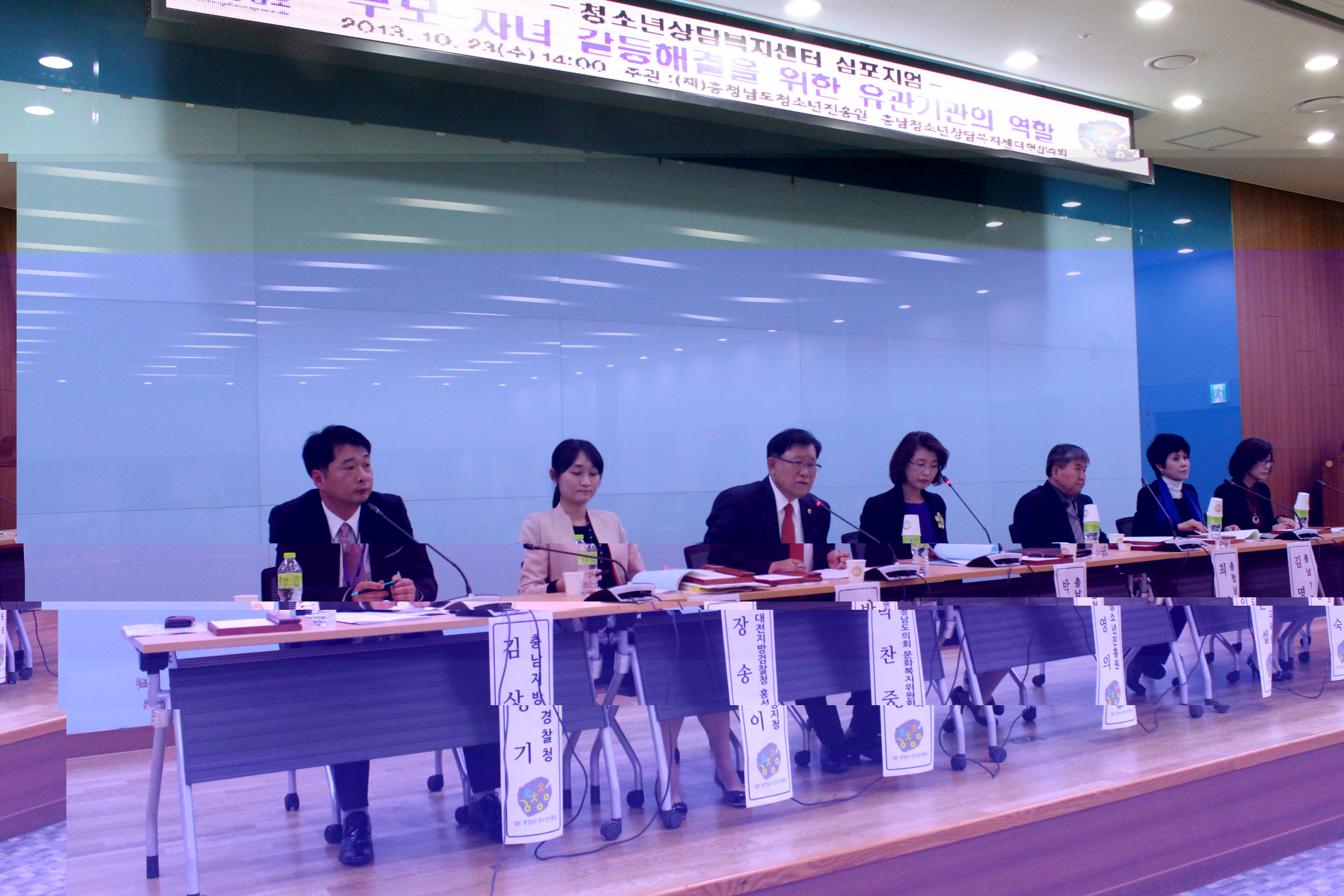청소년 정책 심포지엄 개최 3181 | 최고관리자 | 2014-01-11 일시 : 2013년 10월 23일 수요일 장소 : 충청남도청 대회의실 참석 : 학부모 및 유관기관 관계관 등 내용 : 부모-자녀 갈등해결을 위한 유관기관의 역할 - 기조강연 : 한국청소년상담복지개발원 구본용 원장 - 지정토론