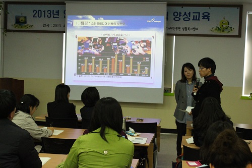 2013년 인터넷 중독예방 상담인력 양성교육 3352 | 최고관리자 | 2013-06-11 일시 : 2013년 4월 25일(목)~ 26일(금) 총 14시간 장소 : 본 원 교육장 (3층) 대상 : 청소년 유관기관 실무자, 청소년동반자, 교사 등 30명 수료. 프로그램 내용 : 1. 청소년 인터넷 및 스마트폰 중독의 실태 2. 청소년 인터넷 문화의 이해 3. 인터넷 중독 척도의 이해와 활용 4. 중독행동과 동기강화 상담