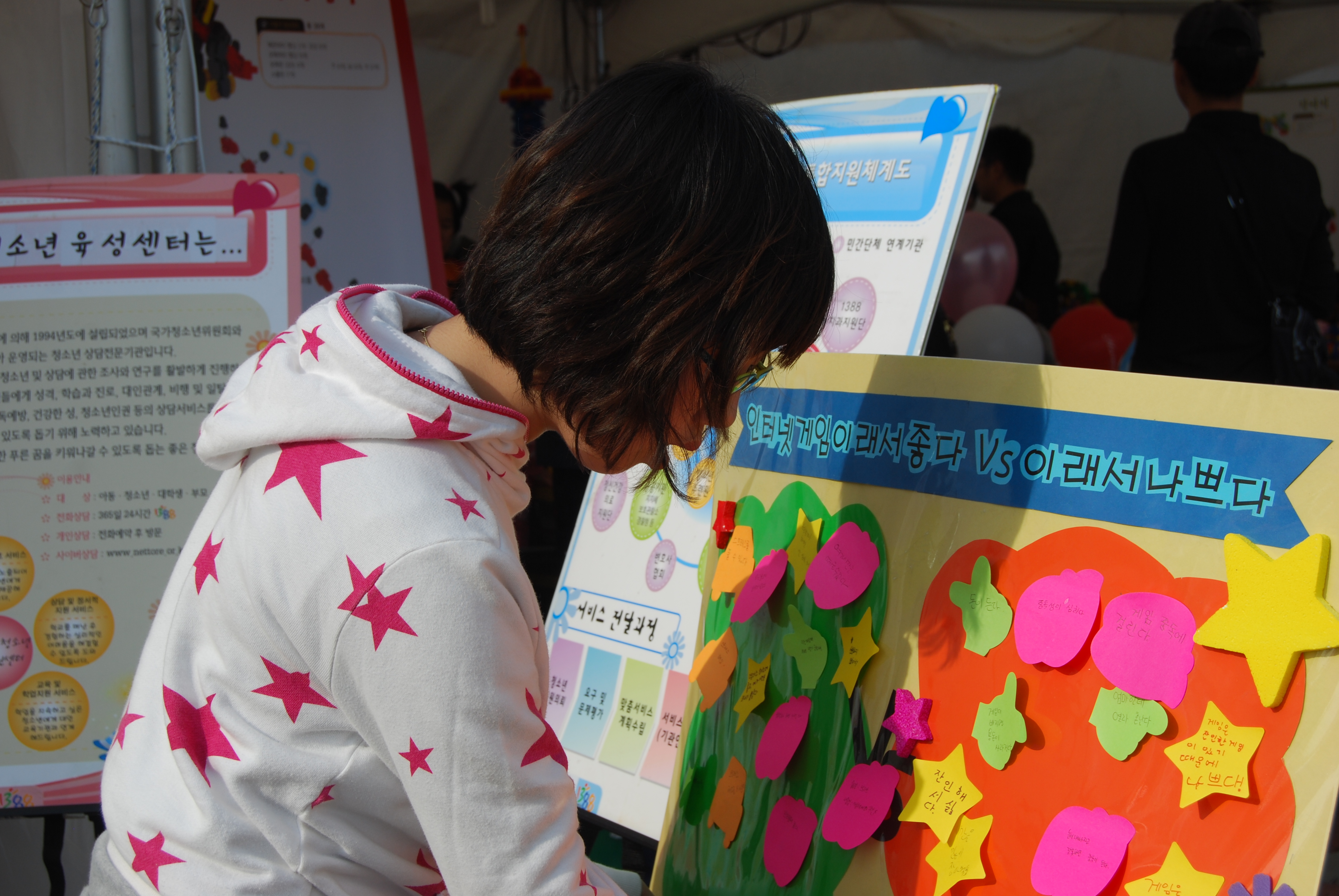 2011년 천안삼거리 아웃리치 활동 3162 | 최고관리자 | 2011-10-04 장소: 천안삼거리일시: 2011.09. 29 - 10.01활동내용: 흥타령축제 부스 주변 홍보활동, 심리검사 및 상담