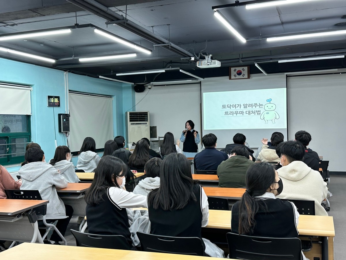 2023년 신학기를 맞아 천안시태조산청소년수련관 이용 청소년들을 대상으로 청소년 트라우마 예방교육이 진행되었습니다.