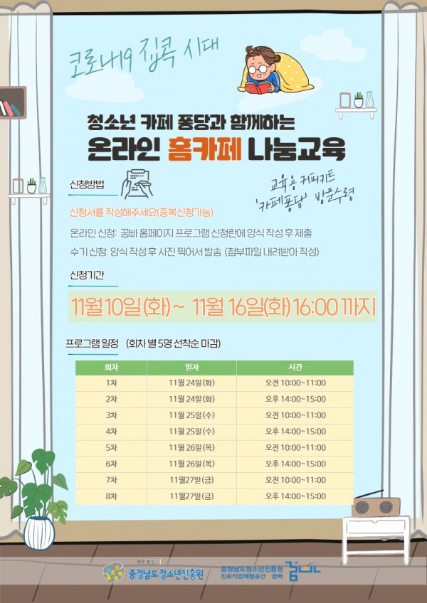 문의사항 : 충청남도청소년지원센터 꿈드림 ☎041-554-1380 인큐베이팅카페 담당자
