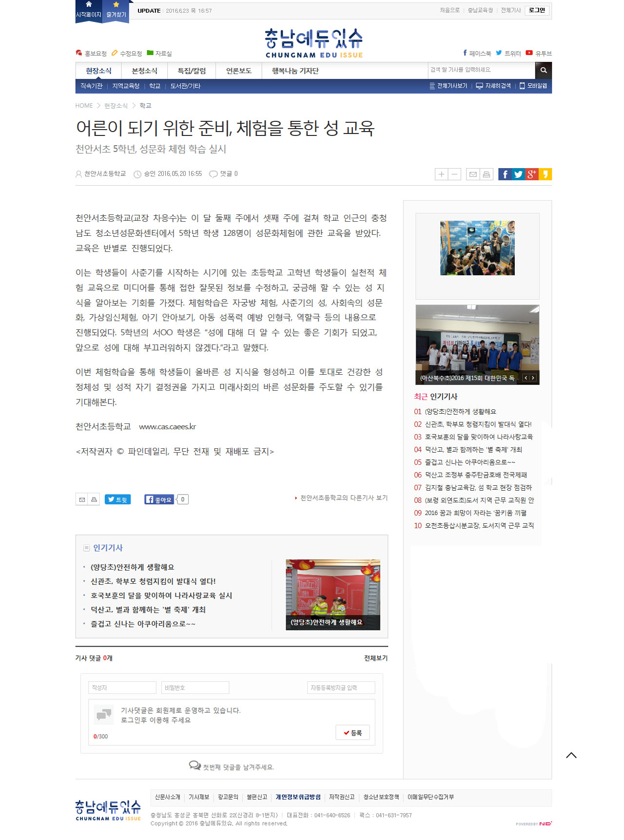2016.5.20 천안서초등학교