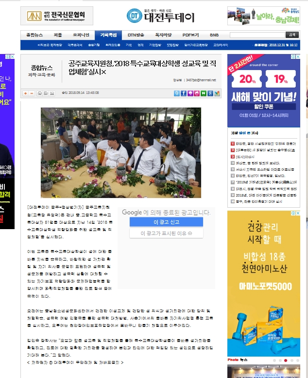 2018년 9월 14일 특수교육대상학생 성교육  (대전투데이)