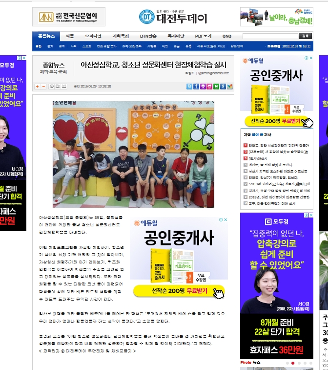 2018년 6월 29일 아산 성심학교, 청소년 성문화센터 현장체험학습(충청투데이) 2333 | 최고관리자 | 2019-06-04 2018년 6월 29일 아산 성심학교, 청소년 성문화센터 현장체험학습(충청투데이)