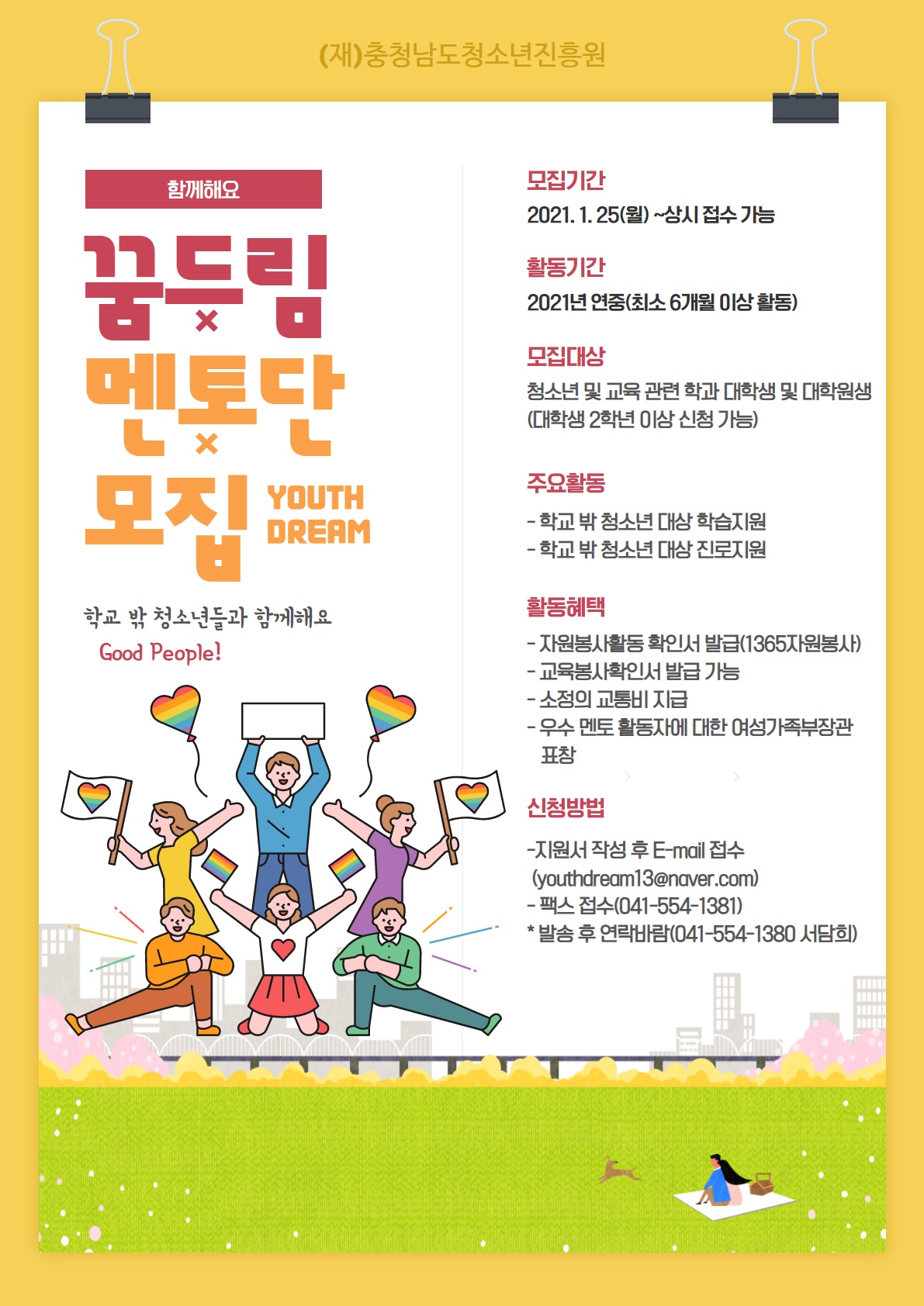 이메일 접수: youthdream13@naver.com 팩스번호: 041-554-1381