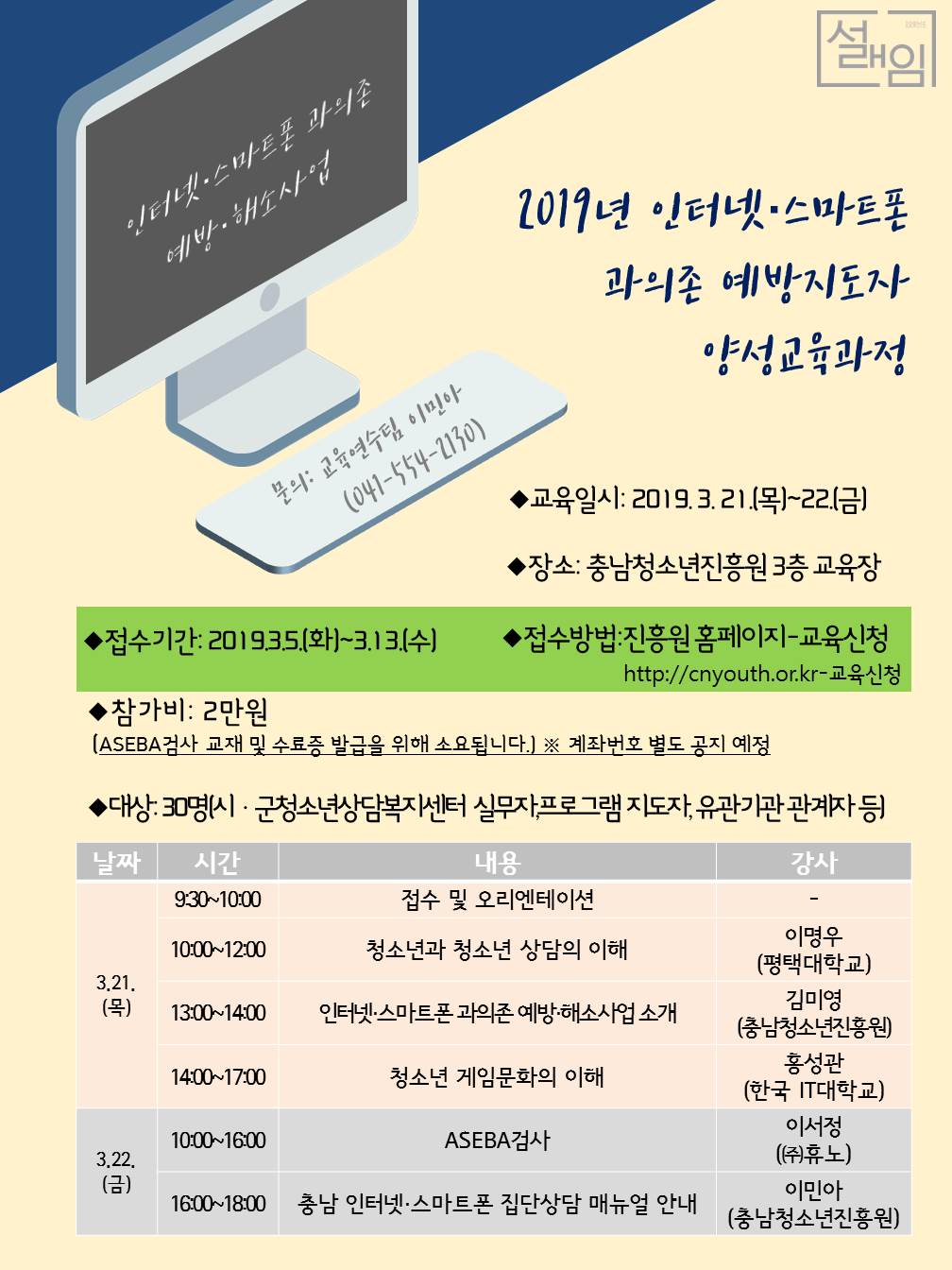2019년 인터넷 ·스마트폰 과의존 예방지도자 양성교육 참가자를 모집합니다!