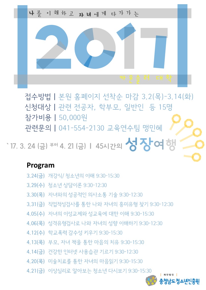나를 이해하고 자녀에게 다가가는 2017 카운슬러대학 참가자 모집