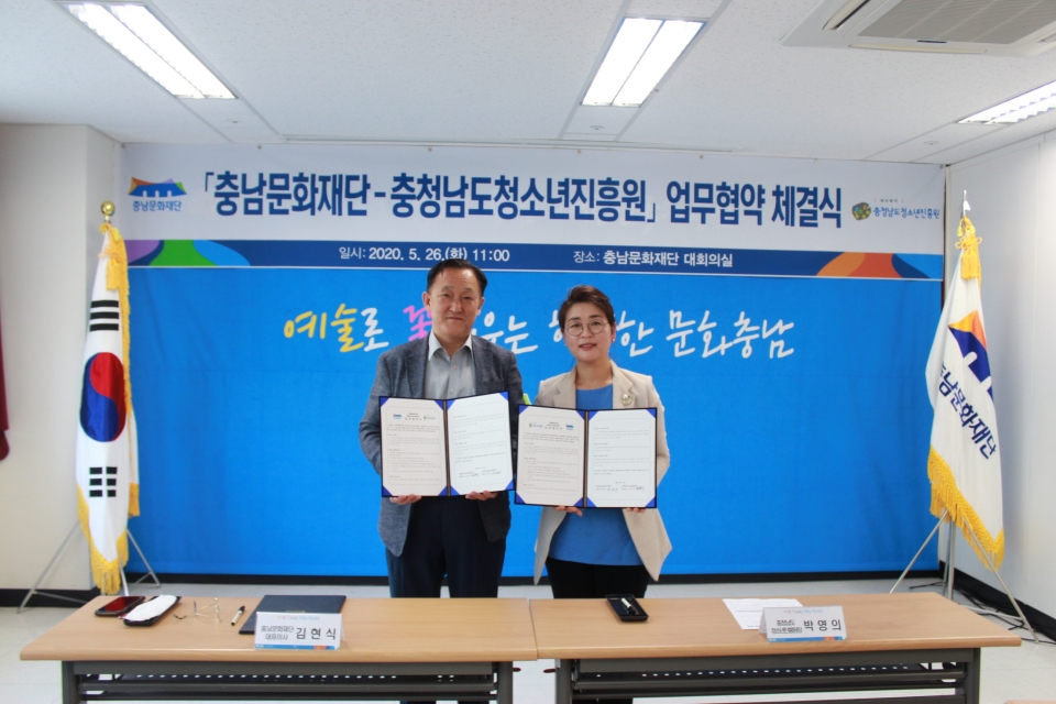 이번 협약식은 (재)충청남도청소년진흥원 박영의 원장, (재)충남문화재단 김현식 대표이사 등 관련 직원들이 참석한 가운데 진행됐다.