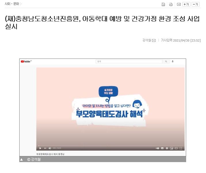 (재)충청남도청소년진흥원, 아동학대 예방 및 건강가정 환경 조성 사업 실시