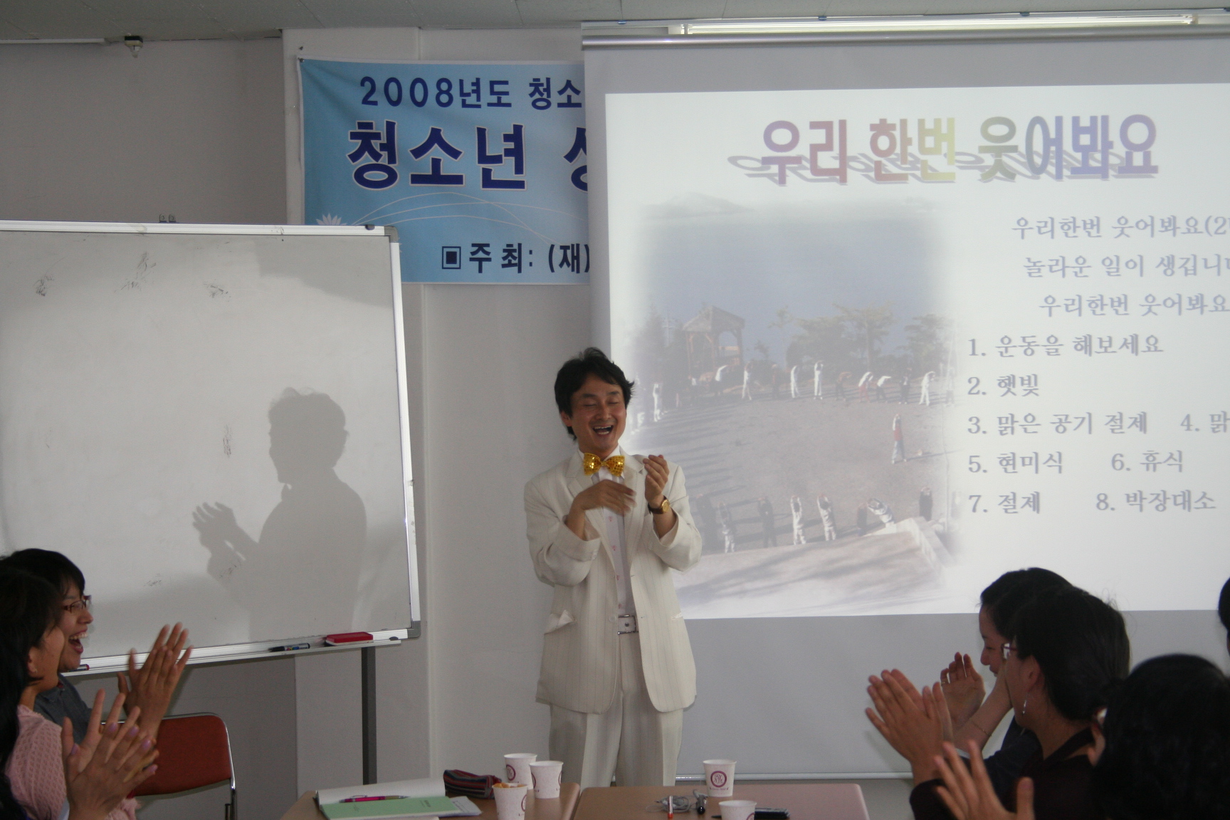 카운슬러대학 3073 | 최고관리자 | 2008-05-16 웃음치료 사진예요^^ 예비 카운슬러 선생님들의 밝게, 맑게 마음도 이쁘게 파안대소하는 모습~ 상담 공부 행복해요 2008년 5월 16일 상담지원실 손희란