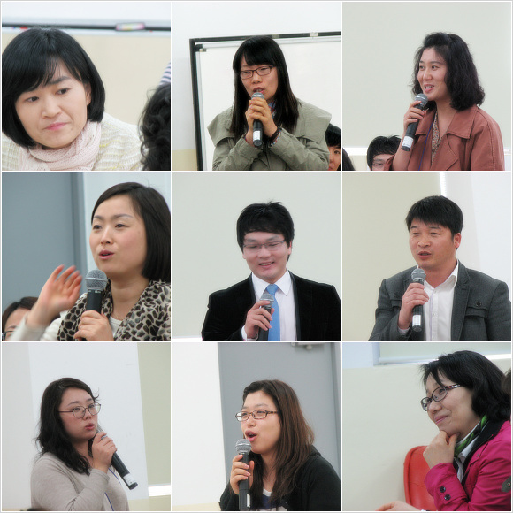 2011 솔리언또래상담프로그램 지도자 양성교육 2830 | 최고관리자 | 2011-04-05 함께했던 선생님들의 모습을 올려봅니다.물론 모든 분들의 사진은 아니고요.아이들 마냥 소감나누는데 쑥쓰러워 하기도 하셨었죠. ^^열심히 참여해주셔서 감사드려요.