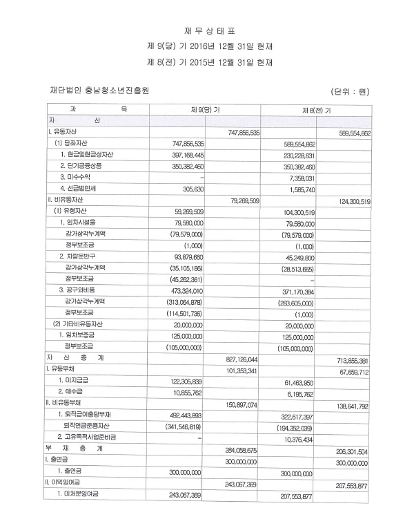2016년 대차대조표 및 손익계산서를 다음과 같이 공개합니다.