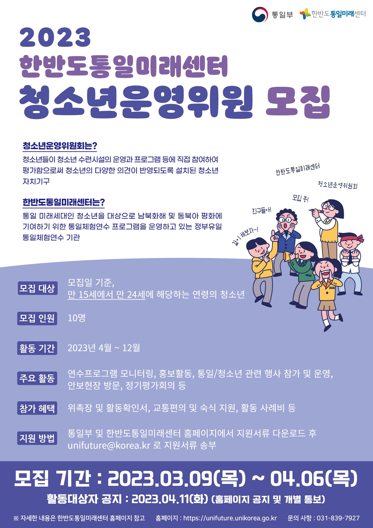 2023년 한반도통일미래센터 청소년운영위원회 모집공고
