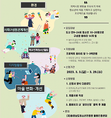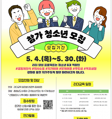 충청남도 청소년 리더 양성 프로젝트 「주.인.공」 참가자 모집