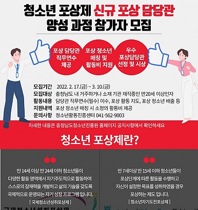 청소년 포상제 신규 포상 담당관 양성 과정 참가자 모집