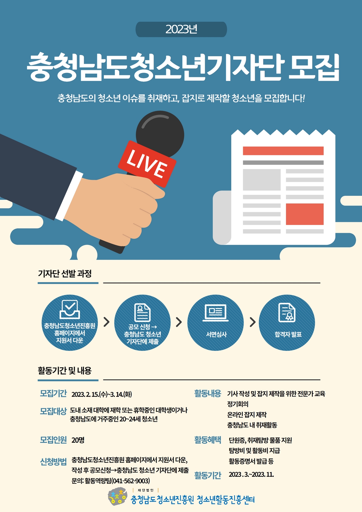 충청남도 내 청소년 이슈를 취재하고 잡지로 제작할 청소년을 모집합니다!