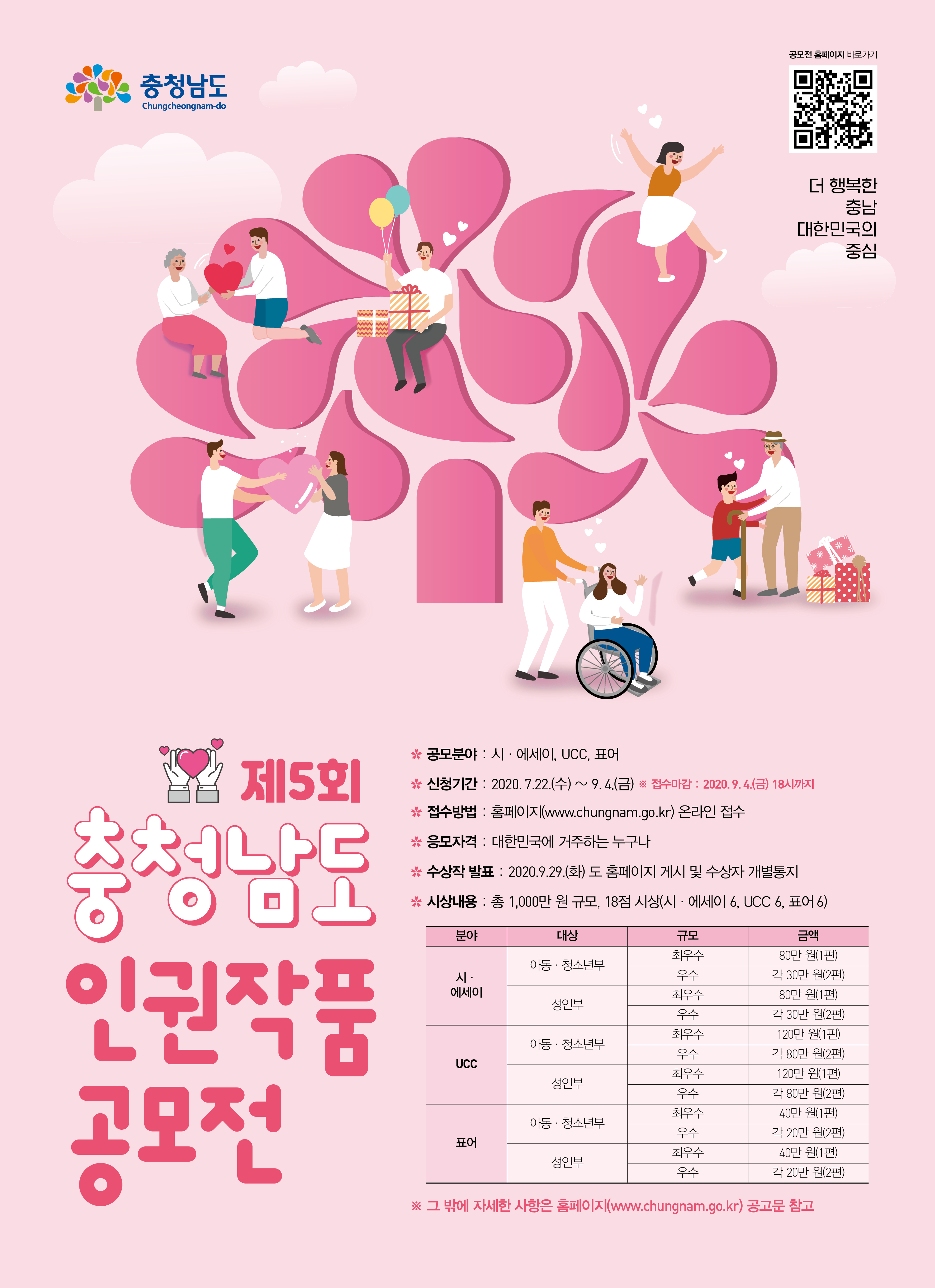「제 5회 충청남도 인권작품 공모전」을 실시하오니 적극적인 참여 바랍니다.