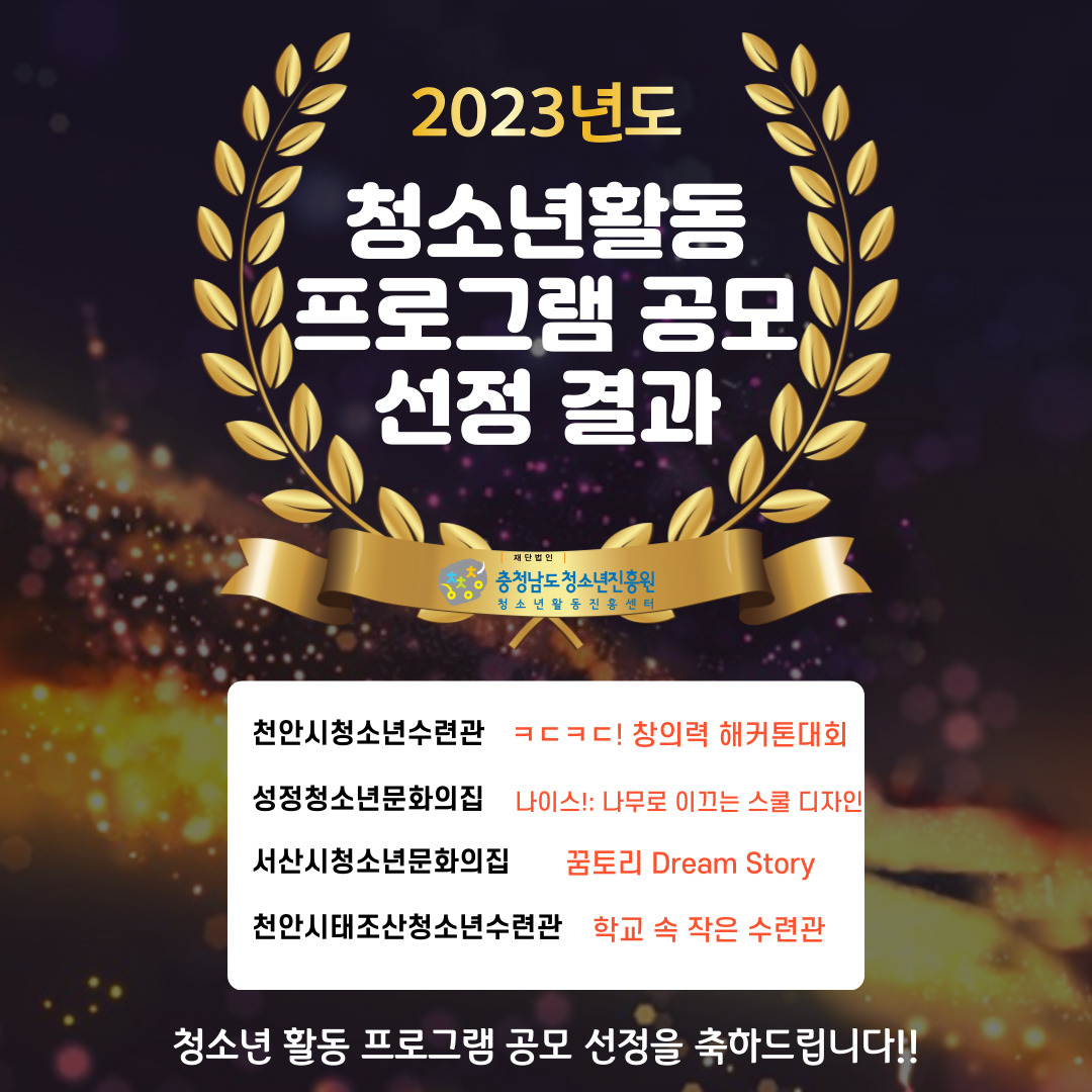 2023 청소년활동 프로그램 공모에 관심가져주신 많은분들게 감사드리며, 선정 결과 안내드립니다.