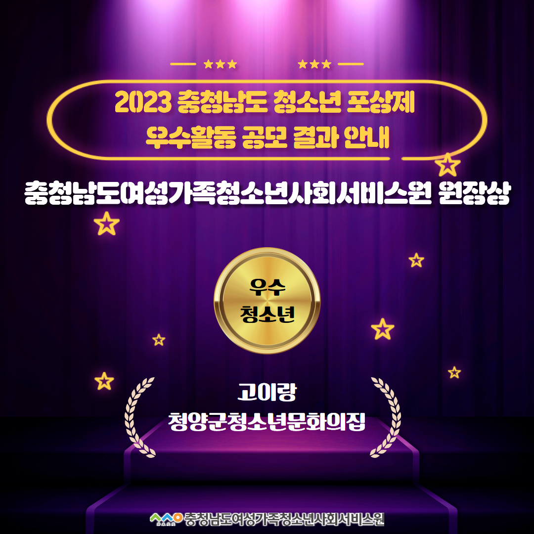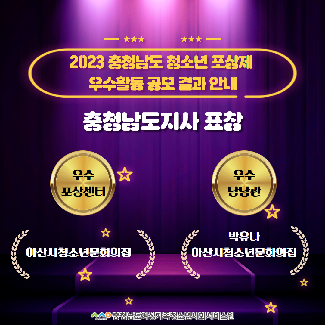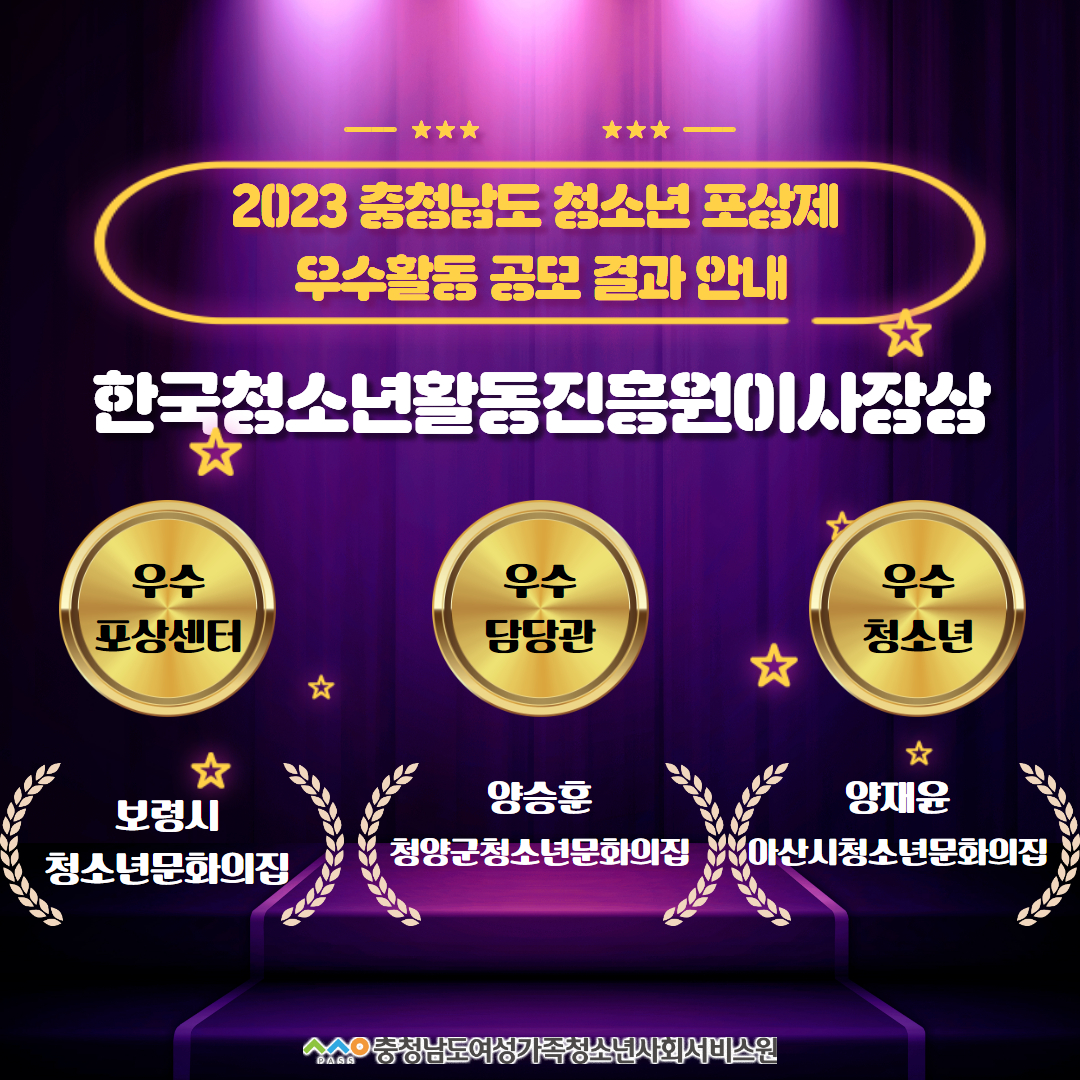 2023 충청남도 청소년포상제 우수 활동 공모 심사 결과를 안내드립니다.