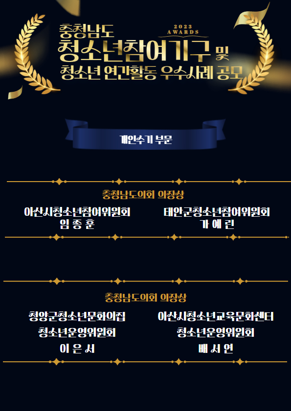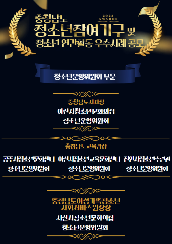 [안내] 2023년 충청남도 청소년참여기구 및 청소년 연간활동 우수사례 공모 선정 결과 안내