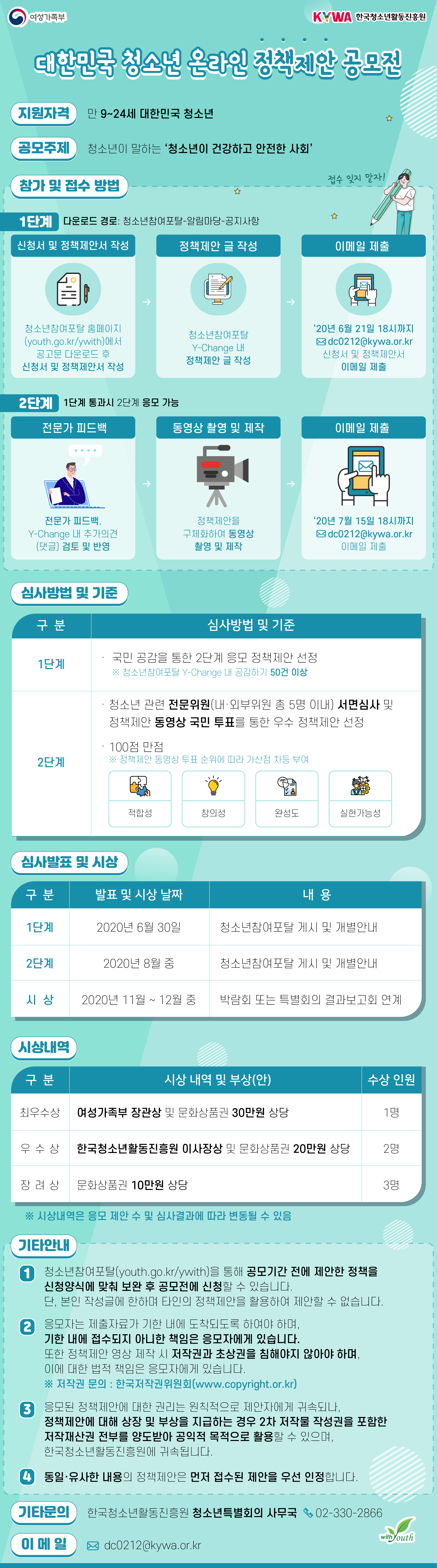 한국청소년활동진흥원에서 진행하는 '대한민국 청소년 온라인 정책제안 공모전' 관련 정보를 다음과 같이 안내드리오니