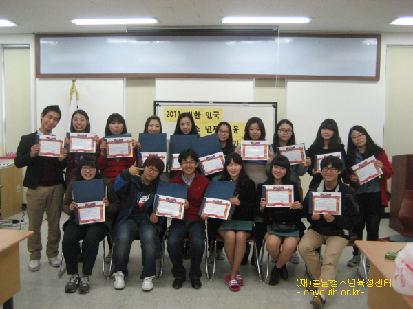 라오스해외봉사단 평가회의 4642 | 최고관리자 | 2011-11-15 지난 11월 12일(토) 본센터 교육장에서라오스해외봉사단 마지막 평가회의를 실시하였습니다.6개월간 봉사단으로 활동하면서 다양한 의견들을 제시해 주었고마지막으로 수료증 수여가 있습니다.수료증은 한국, 라오스에서 제작된 2가지가 수여되었습니다.