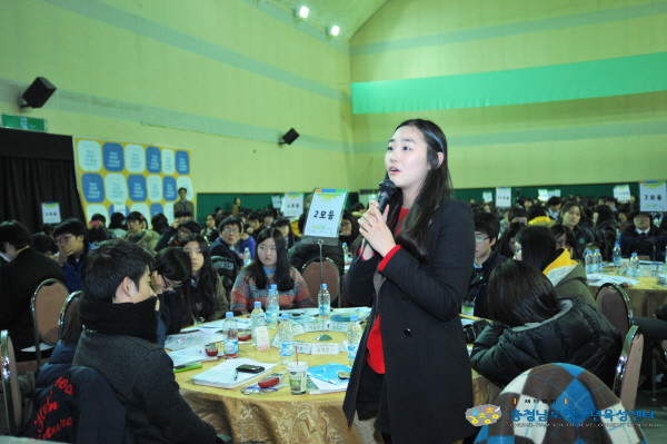 2부에서는 백석대학교 박철웅교수의‘충청남도청소년활동 실태 및 요구조사’발표를 시작으로 충남 청소년과 안희정도지사의 대화마당 ‘청소년, 안희정에게 묻다’ 톡(knoke)! 톡(talk)!!, 톡(kalk)!!으로 안희정도지사가 직접 퍼실리테이터(촉진자)가 되어 두 시간여 동안 현장에서 청소년이 가장 공감하는 이슈를 선정하여 테이블 토론 및 전체토론을 벌였다. 안희정도지사가 대규모의 청소년과 함께 직접 스킨쉽을 통해 충남 청소년들의 발랄하고 다양한 감성과 대화하고 소통하는 자리가 되었습니다.