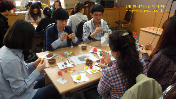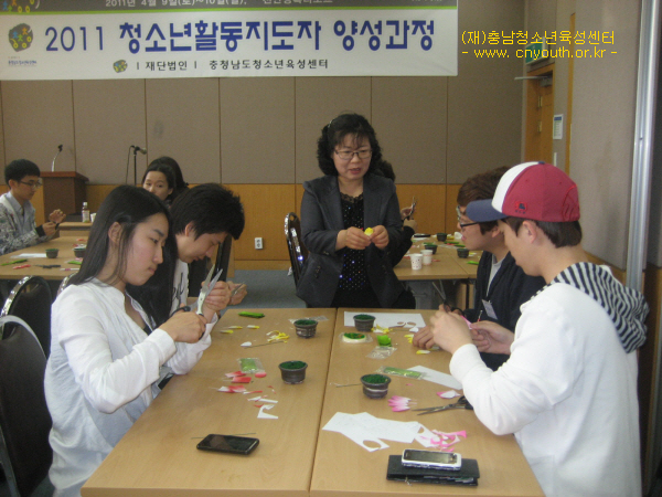 청소년활동지도자양성과정 연수실시 4227 | 최고관리자 | 2011-05-03 4월 9일(토) ~ 10일(일), 천안상록리조트에서 청소년활동지도자양성과정 25명 참가하여 실시하였습니다.청소년들 지도방법, 활동프로그램 실습(페이퍼플아워, 한지공예, 클레이), 관계형성프로그램 등배웠습니다.양성된 활동지도자들은 도내 청소년봉사활동프로그램 보조지도자로 파견될 예정입니다. ^^