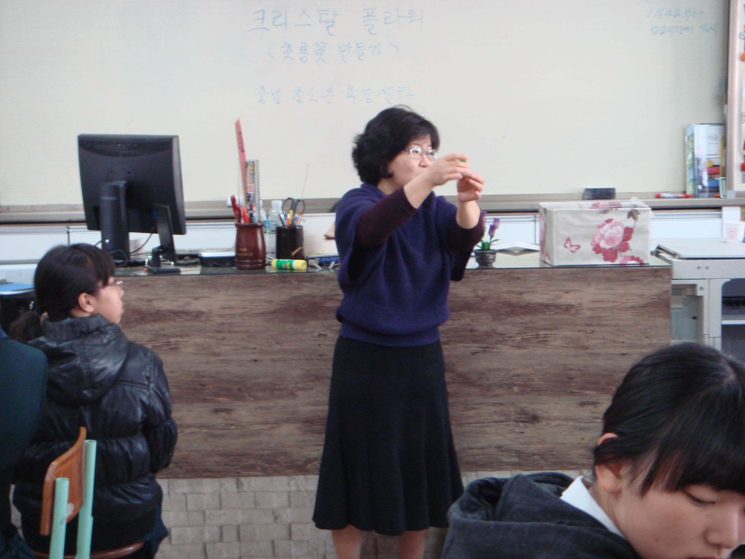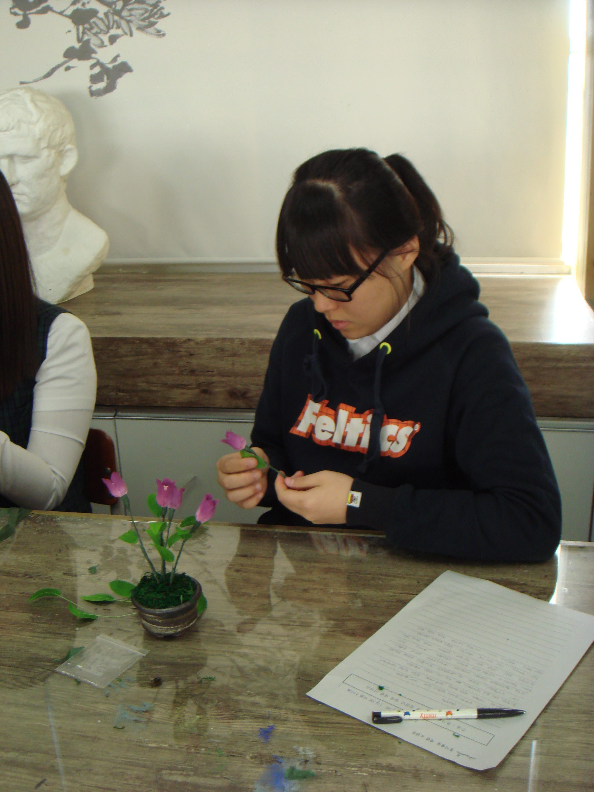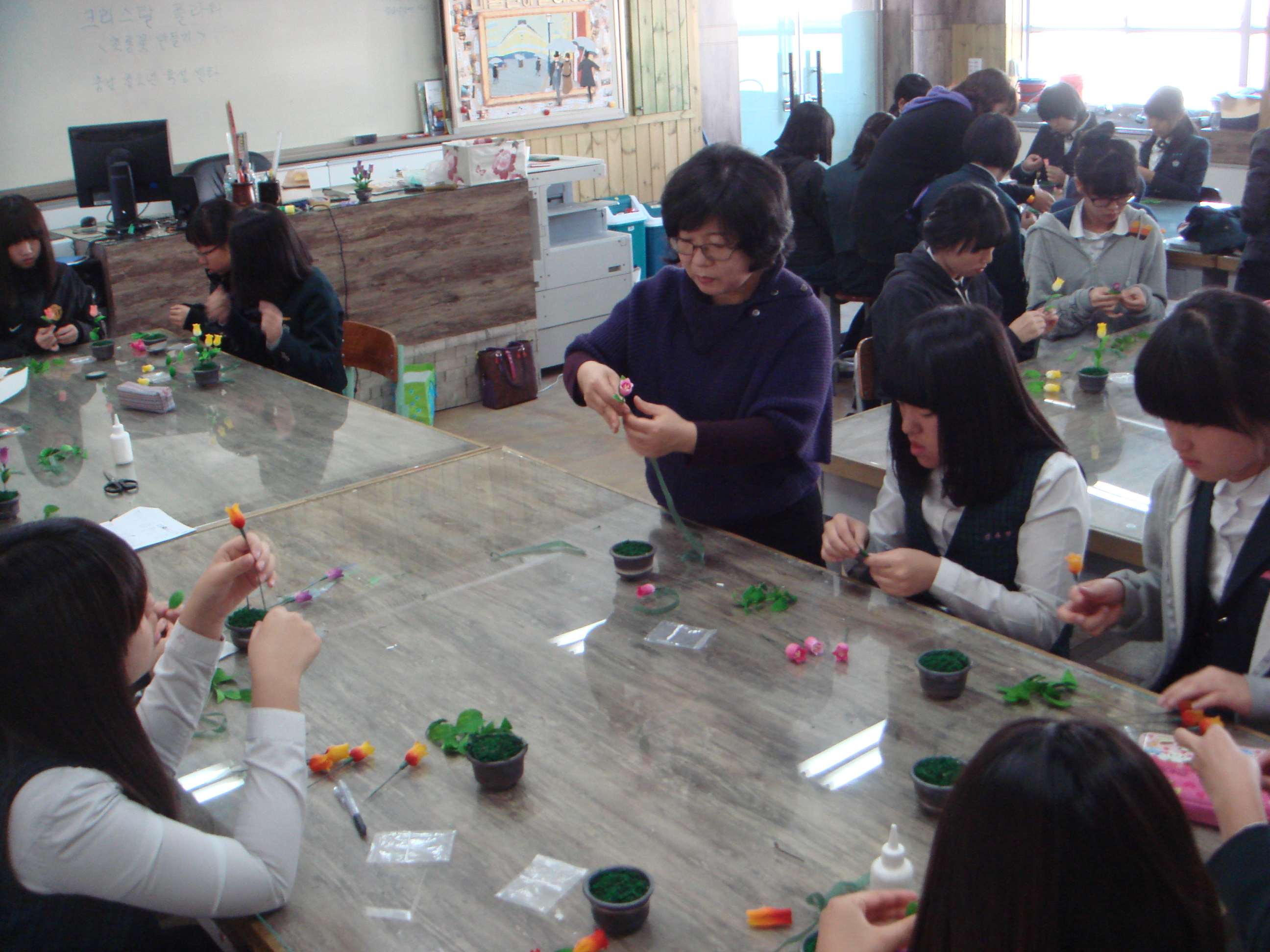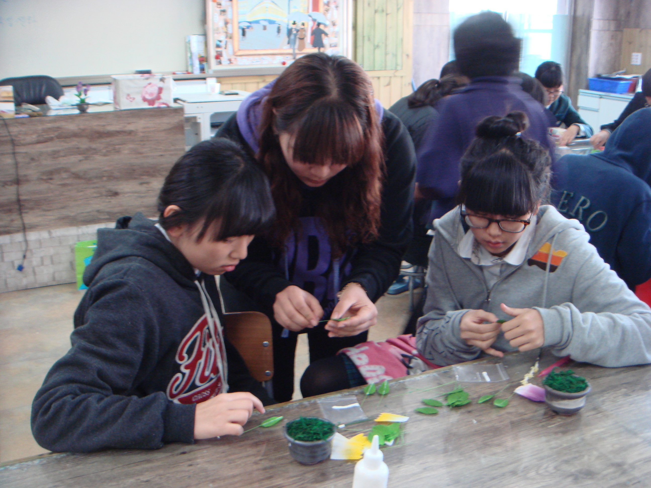논산여중 미남미녀3 동아리 봉사활동 프로그램 지원 4281 | 최고관리자 | 2010-11-01 (재)충청남도청소년육성센터 활동지원실에서는 청소년봉사활동 동아리 지원사업을 실시하고 있습니다. 그 사업의 일환으로 선정된 동아리에 봉사활동 프로그램 지원을 진행중입니다. 10월 30일(토)에 논산여자중학교 미남미녀3 동아리가 페이퍼플라워를 만들어보는 시간을 가졌습니다.