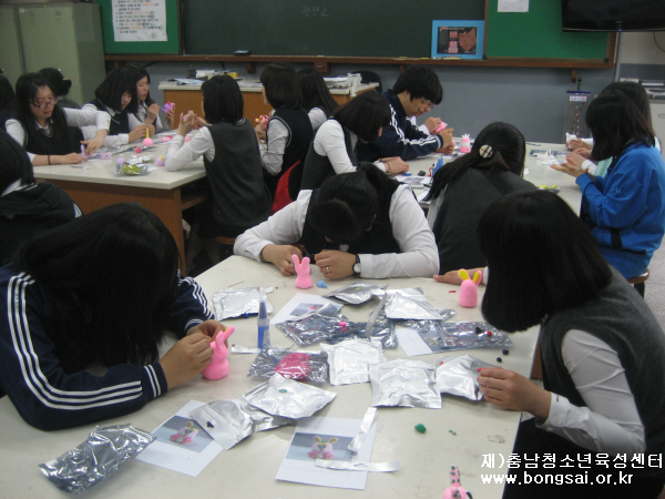 청양고 나누미 동아리 봉사활동 프로그램 지원 4382 | 최고관리자 | 2010-05-25 (재)충청남도청소년육성센터 활동지원실에서는 청소년봉사활동 동아리 지원사업을 실시하고 있습니다. 그 사업의 일환으로 선정된 동아리에 봉사활동 프로그램 지원을 진행중입니다. 5월 24일(월)에 청양고등학교 나누미 동아리가 소프트클레이를 배워보는 시간을 가졌습니다.