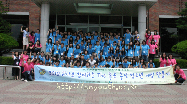 충청남도가 주최하고 재단법인 충청남도청소년육성센터와 충청남도청소년참여기구 실무협의회가 주관하는 “2010년 충청남도청소년참여대회”가 7월 22일(목) ~ 23일(금) 1박 2일간의 일정으로 천안상록리조트에서 열렸습니다.