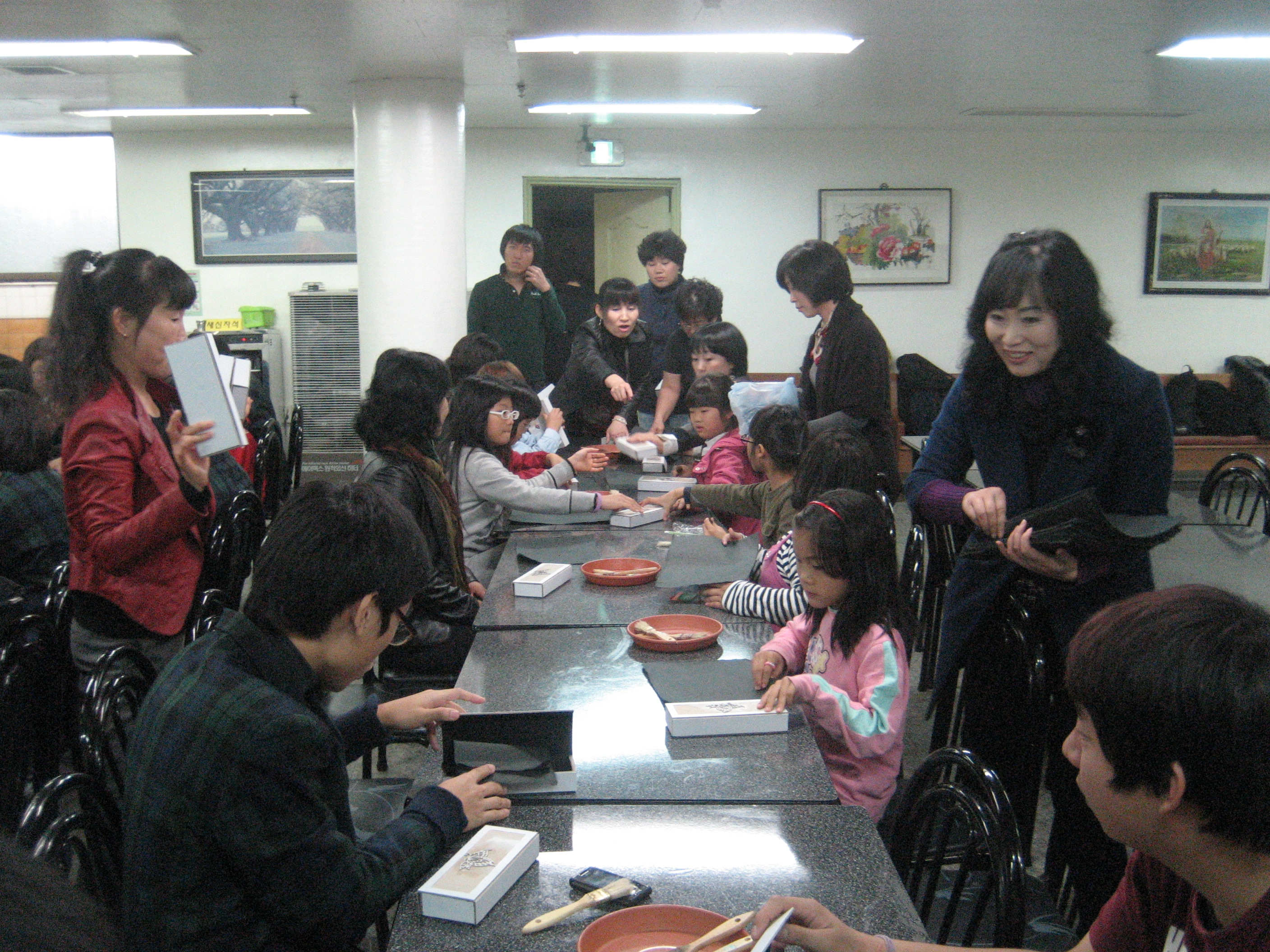 동아리 봉사활동 프로그램 지원 4714 | 최고관리자 | 2009-11-19 (재)충청남도청소년육성센터에서는 11월 5일(목)에 예산중학교에 있는 매헌사랑학부모봉사단과 매헌사랑4-H회 동아리에 한지공예로 필통을 만드는 봉사활동 프로그램을 지원했습니다. 두 동아리의 봉사활동 대상이 방과후 학교 초등학생들이었기에, 한지로 필통을 만들어서 선물해주는 아주 뜻깊은 자리가 되었습니다.