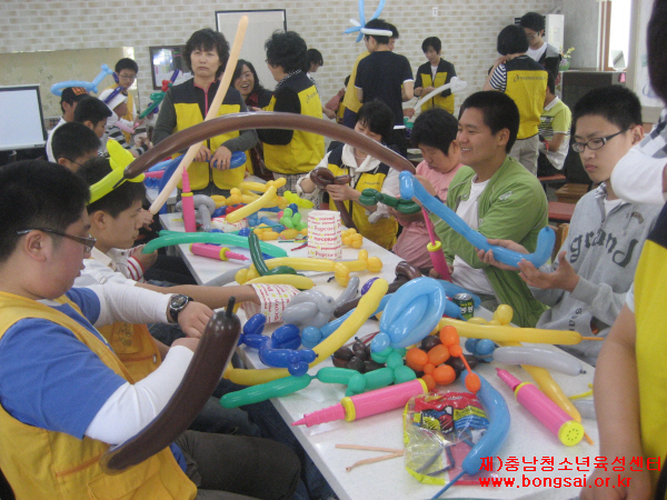 부여고 A&O 동아리 봉사활동 프로그램 지원 4212 | 최고관리자 | 2010-05-10 (재)충청남도청소년육성센터 활동지원실에서는 청소년봉사활동 동아리 지원사업을 실시하고 있습니다. 그 사업의 일환으로 선정된 동아리에 봉사활동 프로그램 지원을 진행중입니다. 5월 8일(토)에 부여고 A&O 동아리 회원들과 함께 누리재활원에서 매직풍선을 배워보는 시간을 가졌습니다.