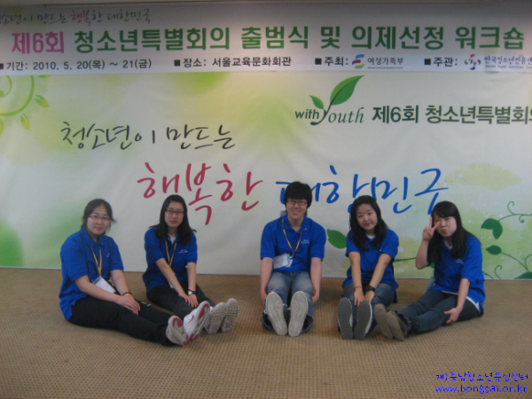 충청남도청소년참여위원회가 5월 20일 ~ 21일 서울교육문화회관에서 열린 제6회 청소년특별회의 출범식에 참가하였습니다.