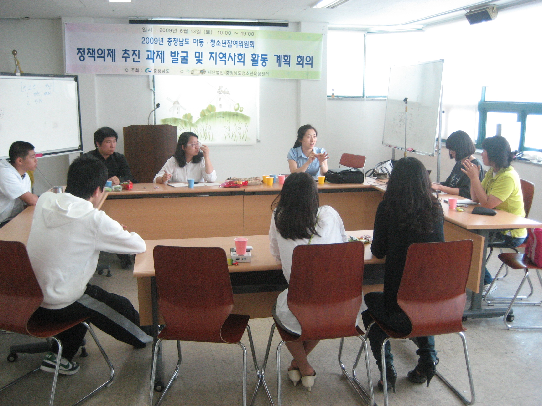 충청남도 아동·청소년참여위원회 지역활동 계획회의 4609 | 최고관리자 | 2009-06-17 지난 6월 13일 충청남도 아동 · 청소년 참여위원회 위원들이 지역활동 계획회의를 실시하였습니다지역 청소년들의 진로와 관련된 의견을 듣고자 설문지와 캠페인 활동을 하게 됩니다.충남 청소년 여러분의 많은 도움과 협조 부탁합니다.