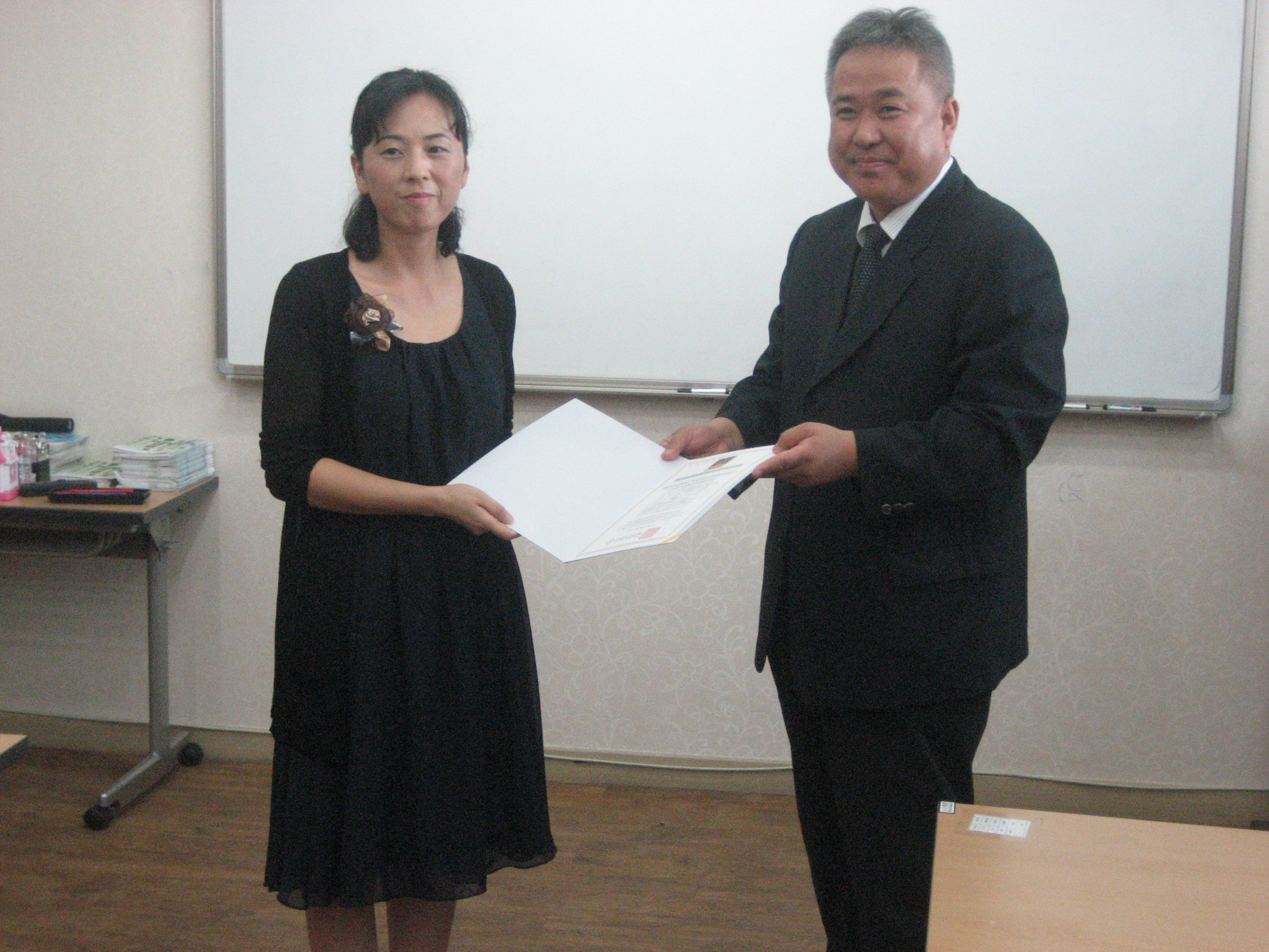 2009 GYSD 한국행사 참가작 활동증명서 전달 - 당진군건강가정지원센터