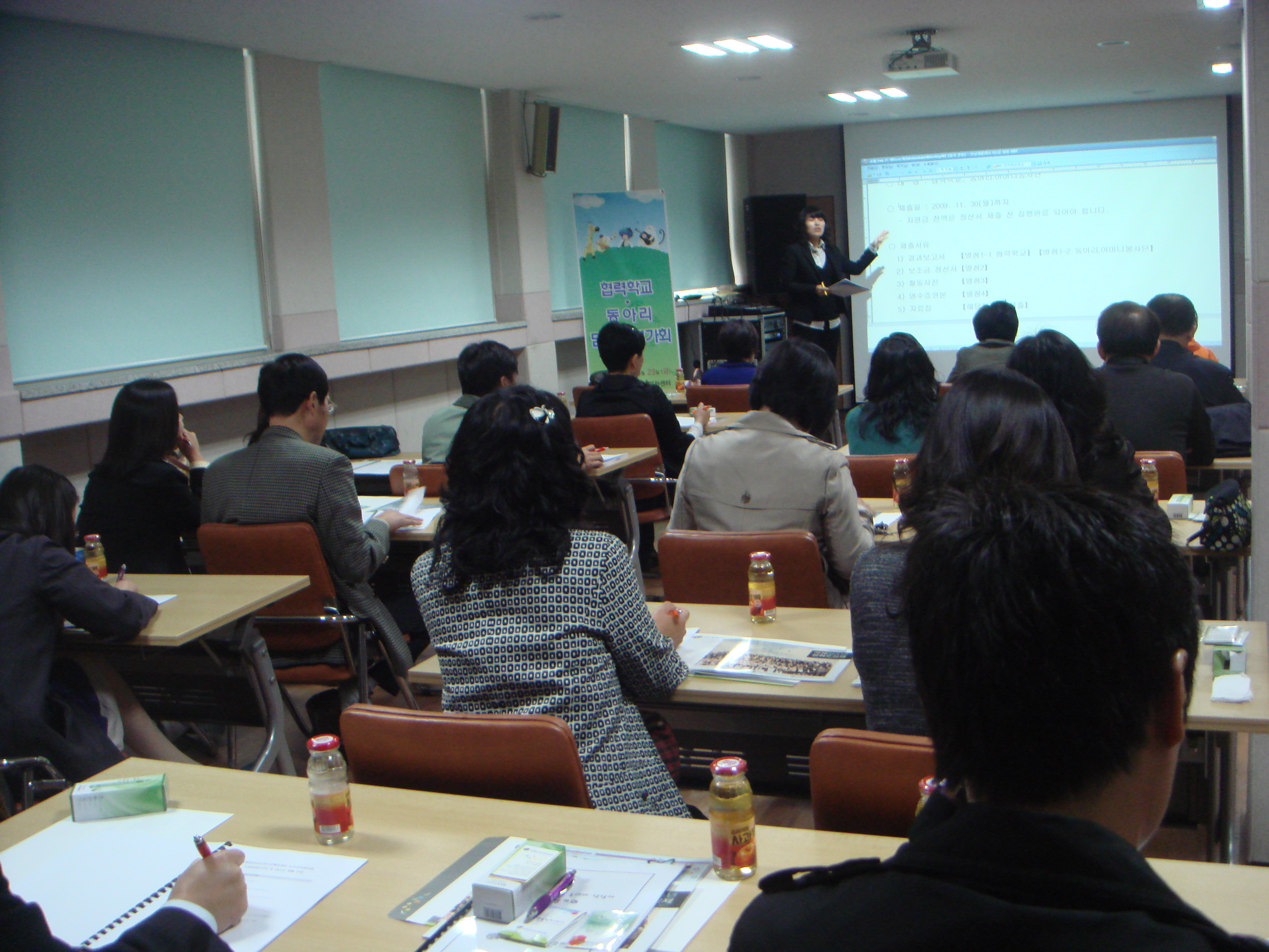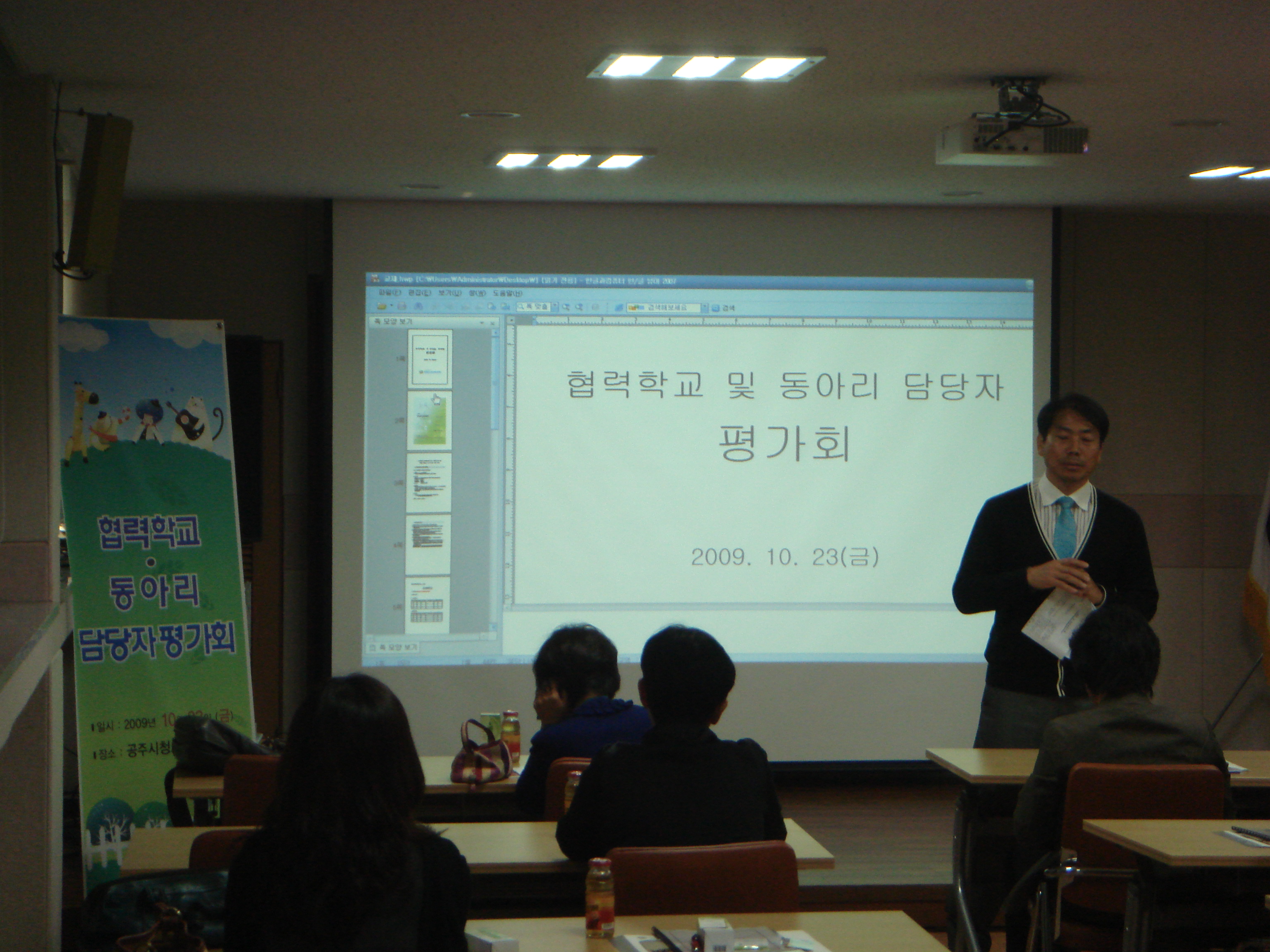 '협력학교 및 동아리 담당자'평가회 4334 | 최고관리자 | 2009-10-29 (재)충청남도청소년육성센터에서는 10월 23일(금) 공주시청소년문화센터 대강당에서 2009 보조금 지원사업 '학교와 센터간의 연계협력', '리더쉽봉사단 개발운영' 사업의 일환으로 협력학교 및 동아리 담당선생님들을 모시고 결과보고서 및 정산서 작성방법을 안내해드리고, 담당자들의 의견수렴을 통해 차년도 보조금 지원사업의 발전방향을 모색하는 아주 뜻깊은 자리가 되었습니다.