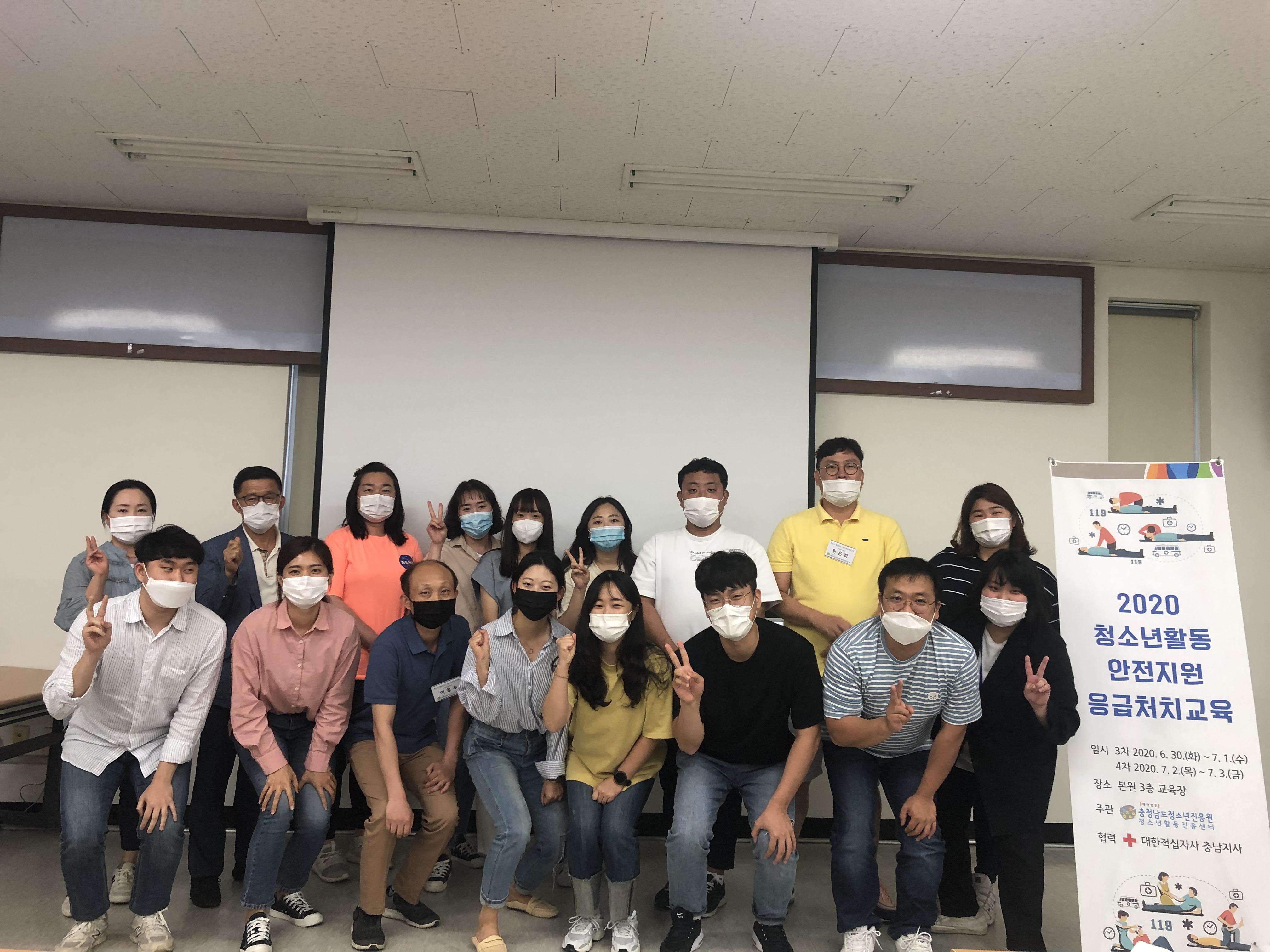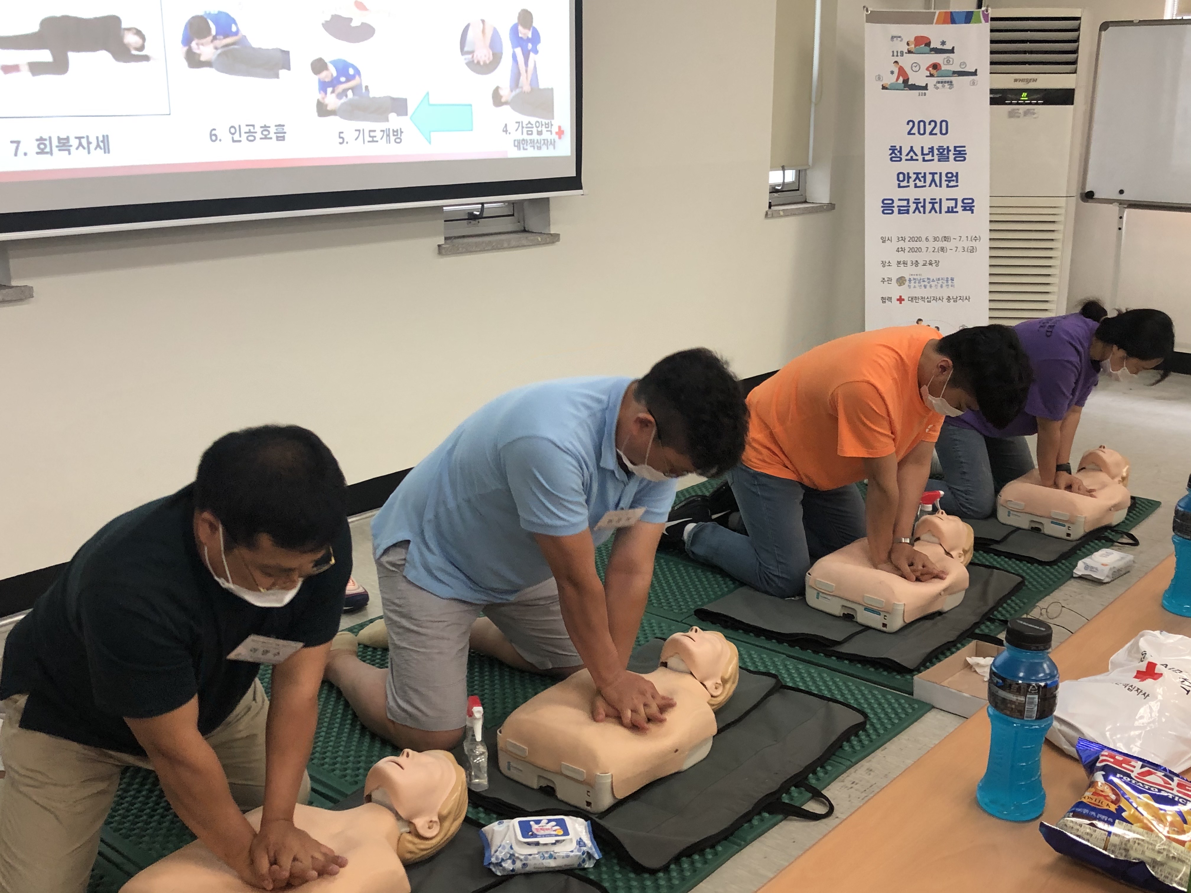 청소년 활동안전 지원 응급처치교육(1차) 2525 | 최고관리자 | 2020-07-09 청소년 활동안전 지원 응급처치교육(1차) - 일시: 2020. 6. 30.(화) ~ 7. 1.(수) - 장소: 본원 3층 교육장