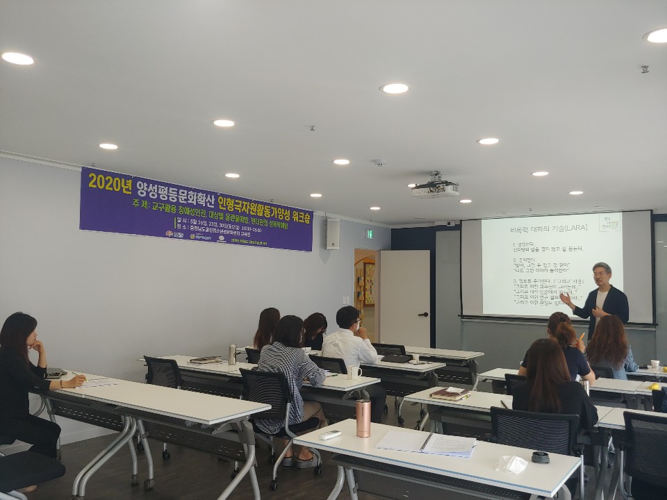 2020 양성평등문화확산 인형극자원활동가 양성과정 워크숍 진행 1715 | 최고관리자 | 2020-06-25 2020년 5월 16, 23, 30일 양성평등문화확산 인형극자원활동가 양성과정 워크숍 진행