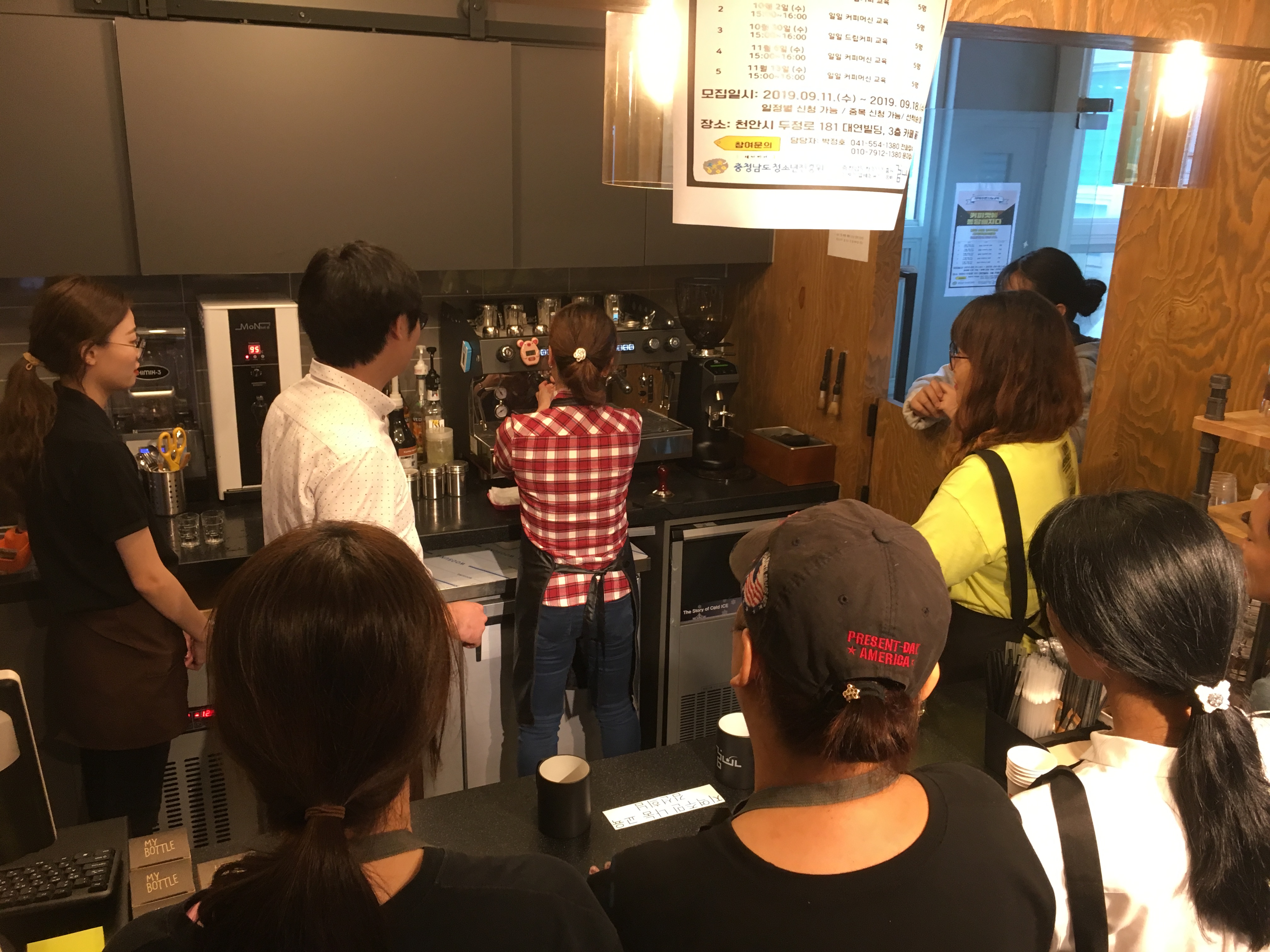 2019년 진로직업체험공간 인큐베이팅 카페 지역주민나눔교육2회차 1874 | 최고관리자 | 2019-11-11 2019년 진로직업체험공간 인큐베이팅 카페 지역주민나눔교육2회차 내용 2019년 진로직업체험공간 인큐베이팅 카페 지역주민나눔교육 - 일자: 2019. 10.2.(수) - 참가자: 천안시 주민 대상 - 내용: 일일 커피머신 제조 및 실습