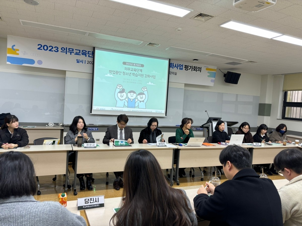 충남 도, 시•군학교밖청소년지원센터 2차 추진(평가)회의 1497 | 꿈드림 | 2023-12-19 12월 13일 수요일,새로운 한해의 사업 마무리하며충남지역 도, 시•군학교밖청소년지원센터 종사자들이 모여 평가회의를 진행하였습니다. 올 한해 주요 사업의 성과를 공유하고, 더 나은 내년도 사업 추진을 위한 논의의 시간을 가졌습니다. 오늘 논의된 내용들을 잘 담아서더 많은 학교 밖 청소년을 발굴하고 지원을 확대하여 학교 밖 청소년들이 건강하게 성장 할 수 있도록 노력하겠습니다.