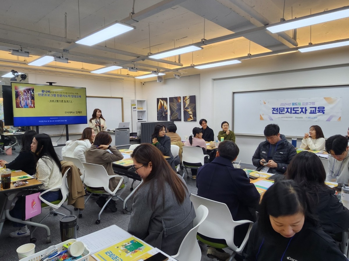 이러한 의무교육단계 학업중단 청소년 지원을 위해 3. 8.(금) 도,시ᐧ군 학교밖청소년지원센터 종사자 25명을 대상으로 저연령 학교 밖 청소년 진로탐색 프로그램인 ‘꿈나비(꿈을 찾아 나의 진로를 준비하는 여행)’ 전문지도자 양성 교육이 진행되었습니다.