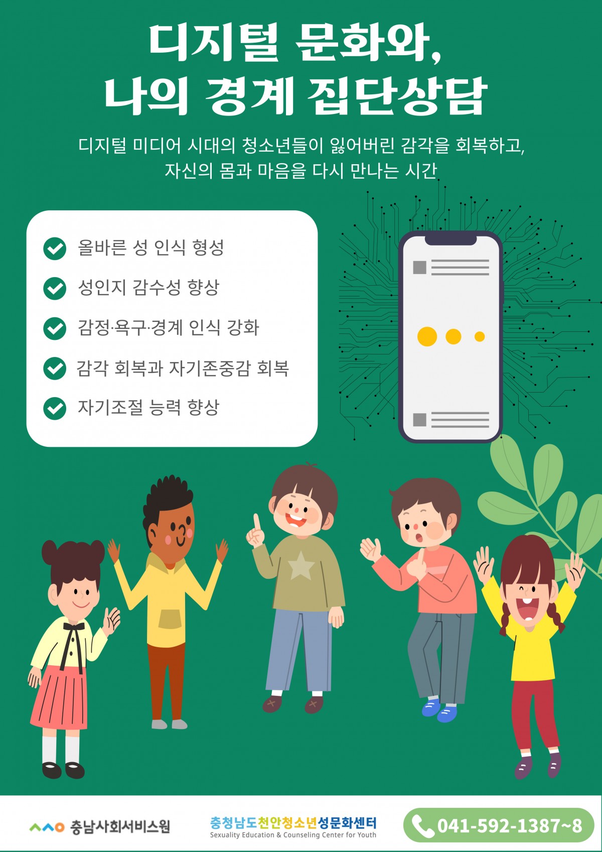 지난 11월 04일부터 11월 06일까지 디지털 문화 속에서 성장하는 학생들을 위해 디지털 문화와, 나의 경계 집단상담 집단상담 프로그램을 운영하였습니다.