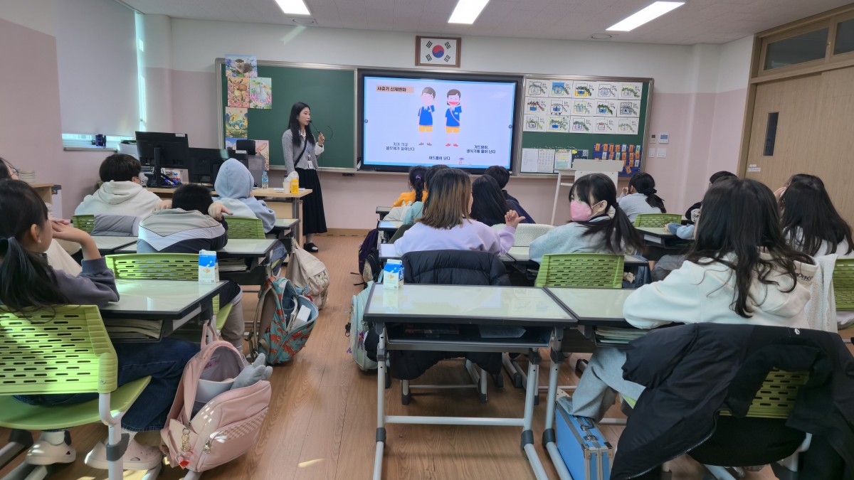 센터는 11월 20일 찾아가는 성교육 프로그램을 통해 학생들과 함께 사춘기 몸과 마음의 변화, 또래 성폭력 예방, 그리고 건강한 경계를 지키는 방법과 대처 방안에 대해 의미 있는 시간을 가졌습니다.