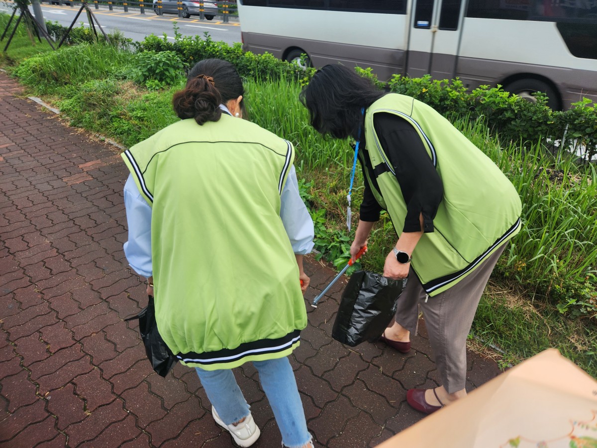 간단한 준비 운동 후, 센터 주변 골목길과 공원, 버스 정류장 등 평소 지나치기 쉬운 곳곳을 돌며, 버려진 쓰레기를 하나하나 수거하는 플로깅 시간을 가졌습니다.